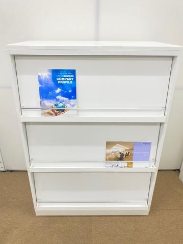 【中古品では珍しい!コクヨ製・3段雑誌架タイプ!】【雑誌・パンフレッド等々、扉を開けると収納でき、オフィスの雰囲気を変えたい方におすすめ!!】■コクヨ(KOKUYO) エディアシリーズ 雑誌架 3段 ローキャビネット ■本体ホワイト【2506】弊社使用欄【A01018642】