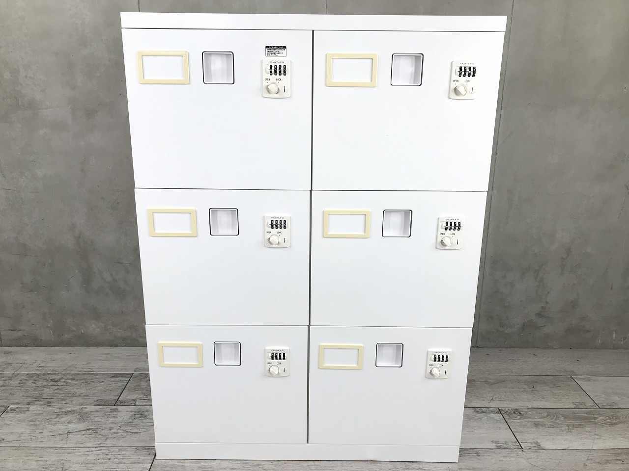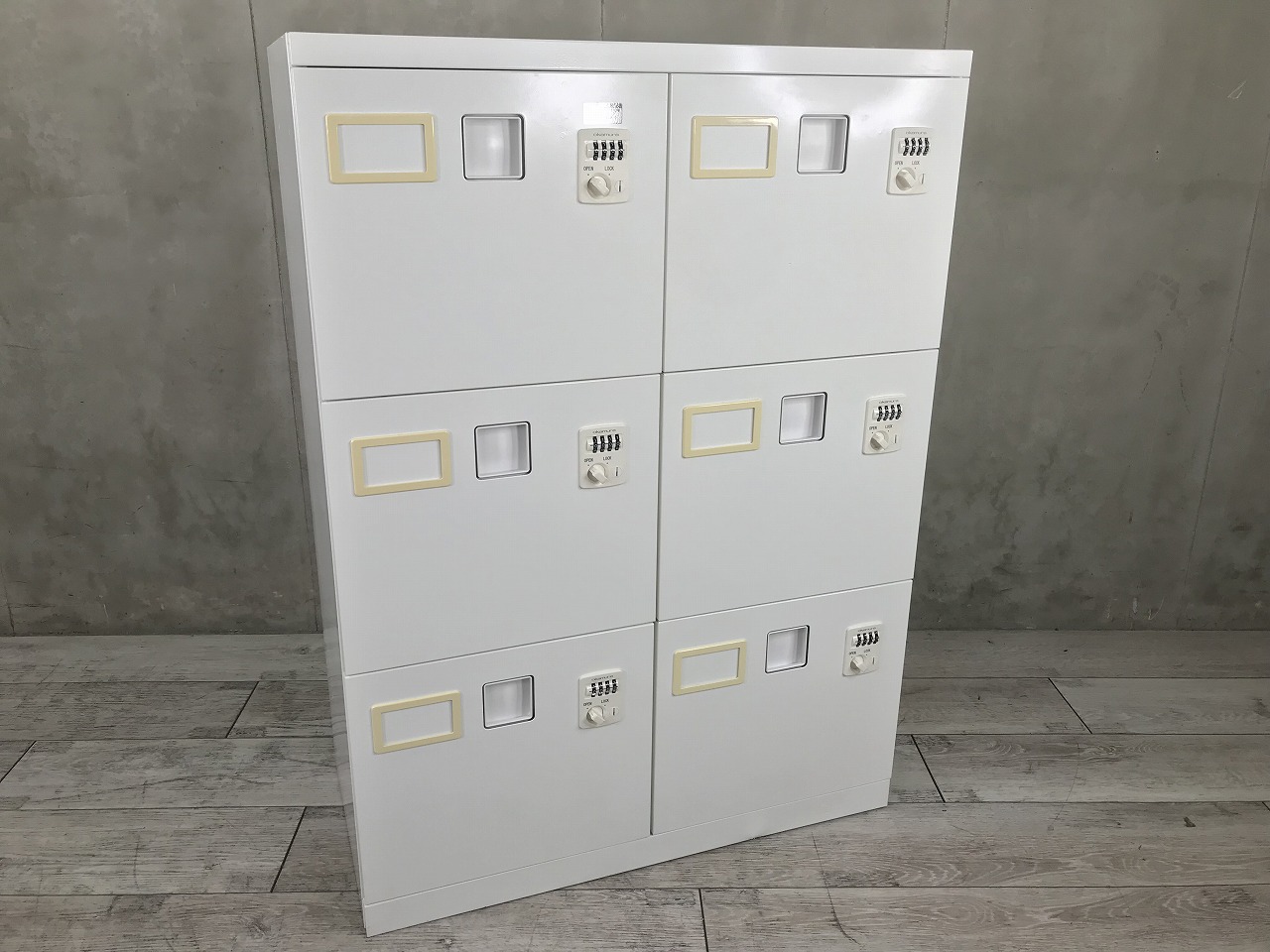 【博】オカムラの6人用パーソナルロッカー【レクトライン/ホワイト色※ダイヤル錠】 ※【博多店在庫品※在庫確認必要:南店でもご案内が可能です】