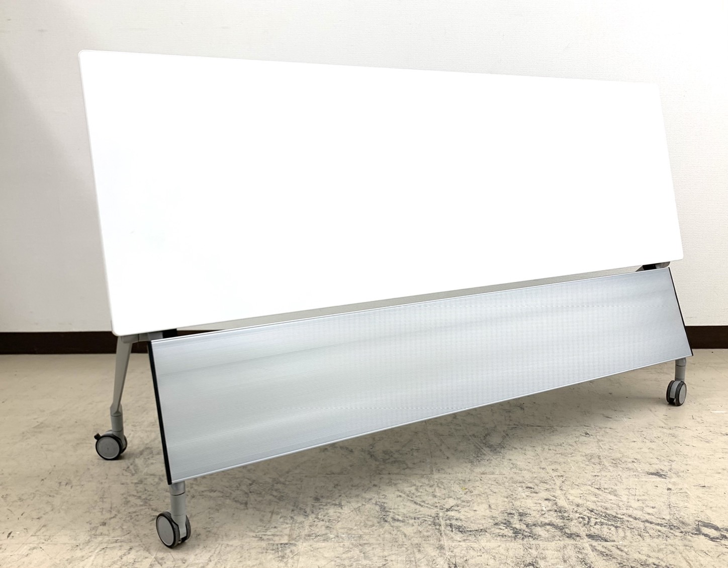 【折りたたみ収納が秀逸!スタイリッシュなデザインで高品質!】■オカムラ(okamura)製 インターアクトNTシリーズ(INTER ACTNT) サイドスタックテーブル W1500×D600×H720mm ■キャスター付 ■ホワイト