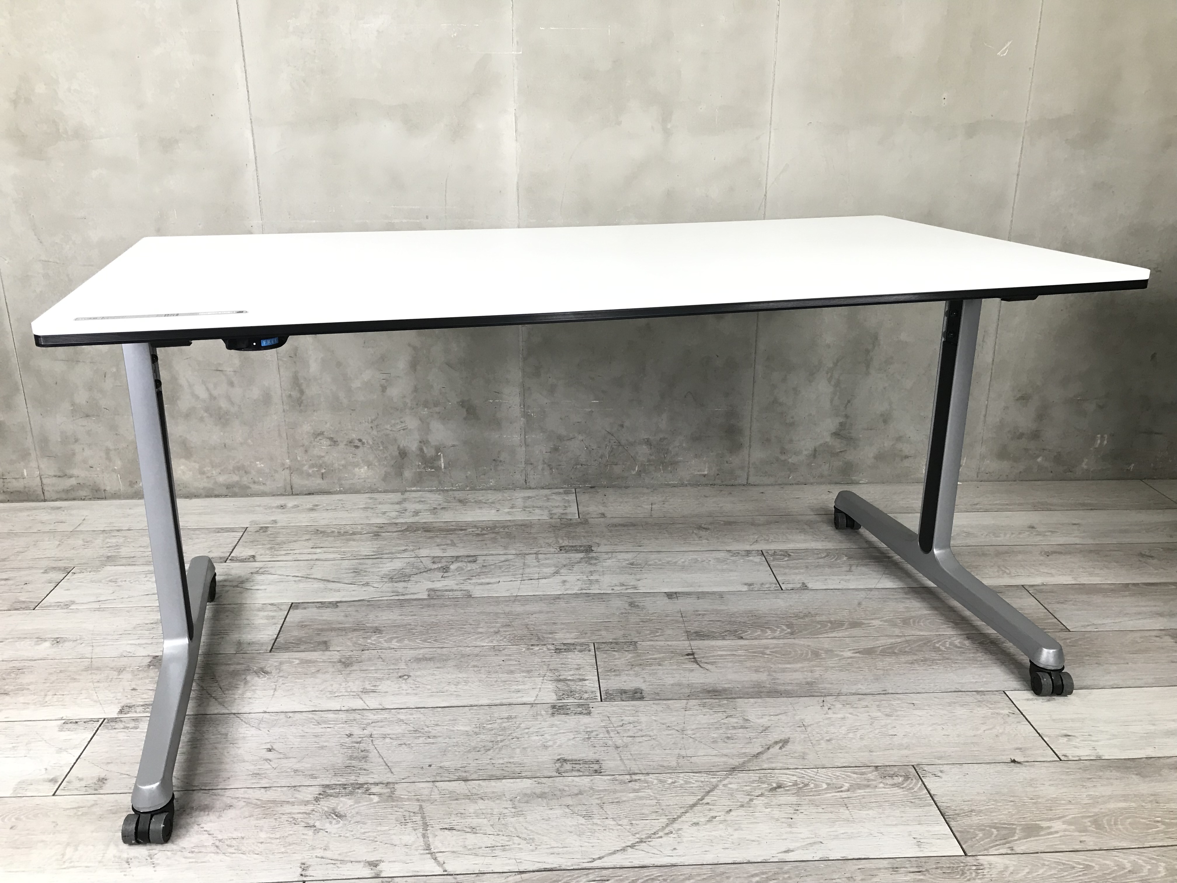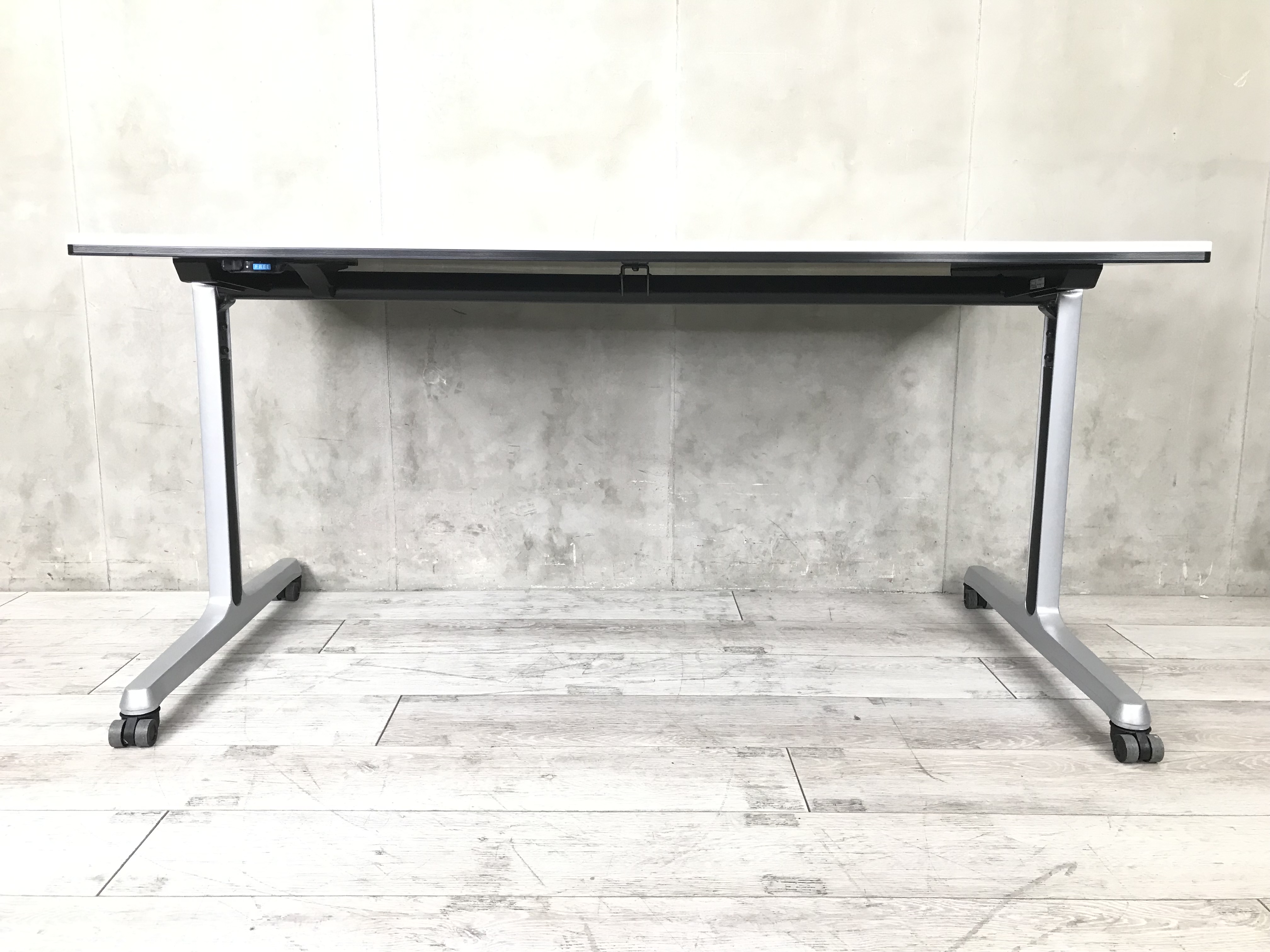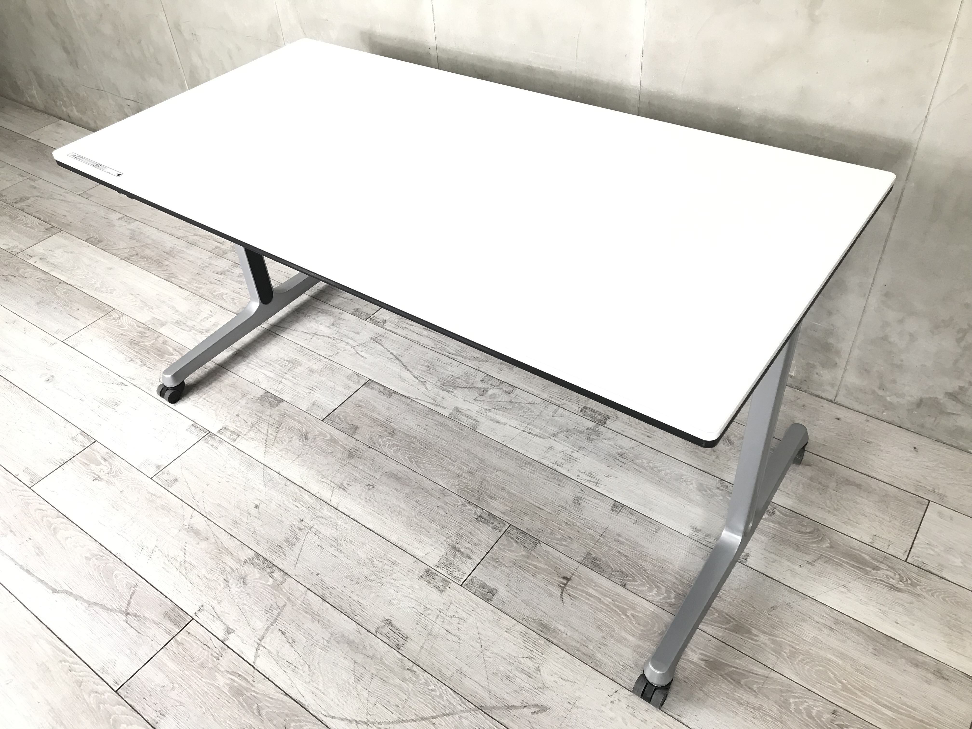 【横幅1500】キャスター付なのでサッとレイアウトを変えれる!手元でロックが可能でスマートです! オカムラ/インターアクト/ホワイト/ミーティングテーブル- 春日部・越谷店