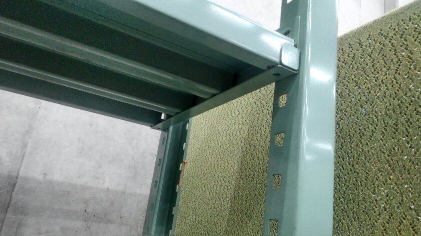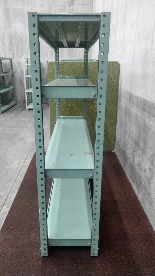 【シール跡多数ありの為、通常価格(20,000円)より1,500円OFF】中古のグリーン色ラックが多種類入荷しました!⑦ 注)呼称W1800/D450 実寸W1855/D470 天地4段 耐荷重:段/300kg ボルトレスなので組立も簡単! ※マテハン本舗の中古商品は、千葉県柏市に在庫がございます。- マテハン本舗