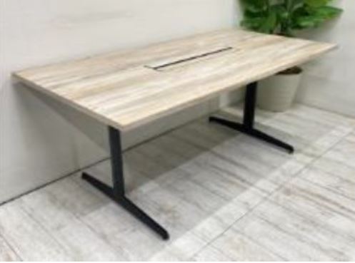 【KS】オシャレな木目デザイン! オカムラ ミーティングテーブル W1550×D800mm ビンテージエルム 配線取り出し口あり- 茨城南店
