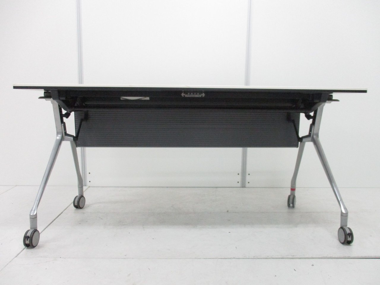 【折りたたみ収納が秀逸!スタイリッシュなデザインで高品質!】■オカムラ(okamura)製 インターアクトNTシリーズ(INTER ACTNT) サイドスタックテーブル W1500×D600×H720mm ■キャスター付 ■ホワイト