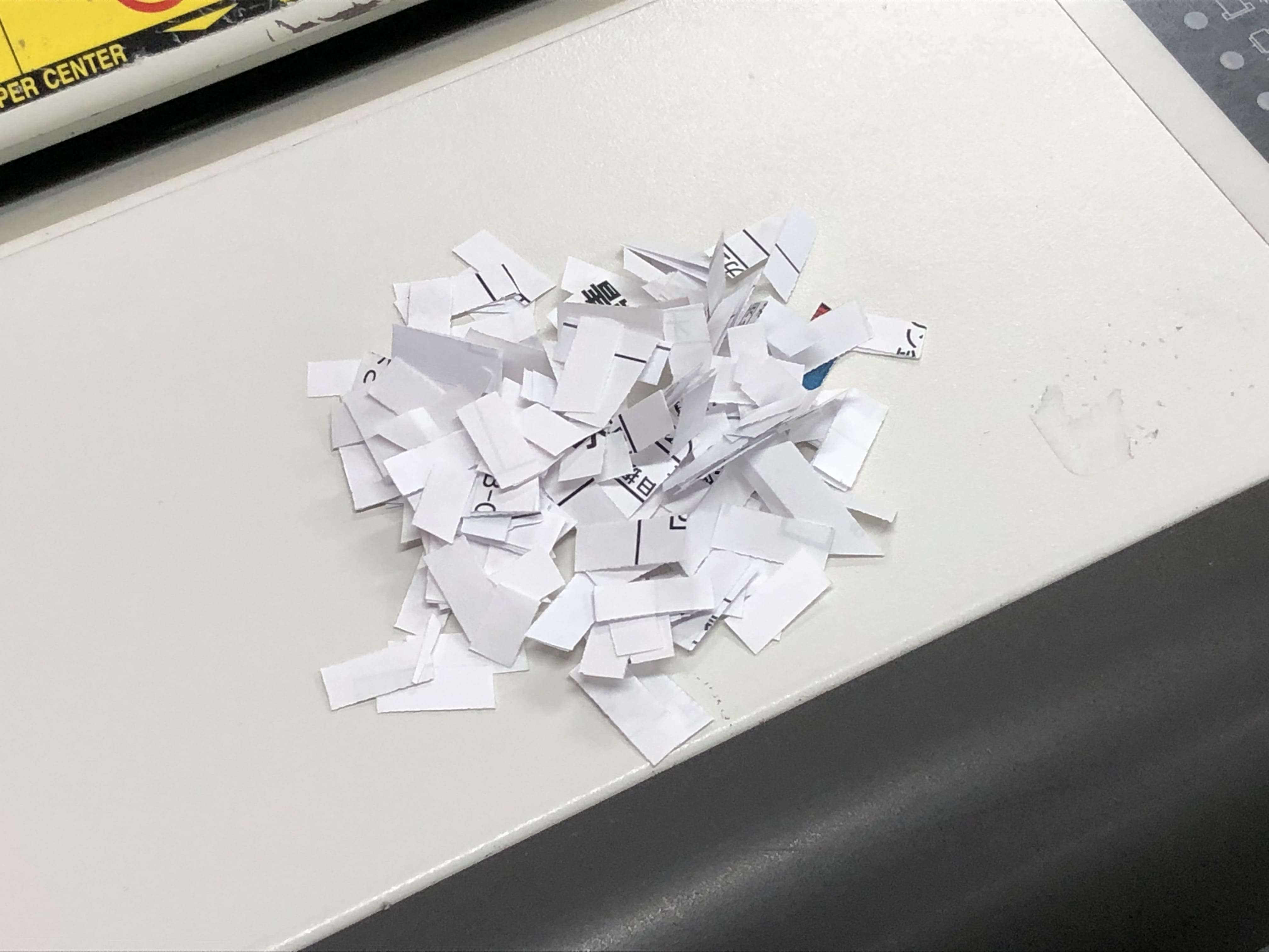 縦切りと横切りの役割の異なる2つのカッターを搭載し、2段階でカットすることで静音かつスピーディーな細断を実現します。またその細断くずはかさばりにくく、収容能力を飛躍的に高めます。