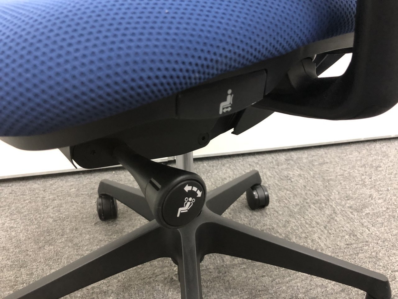 - 座面右下のダイヤル操作で、リクライニングの強弱調整が行えます。これまでのダイヤル式よりも、少ない回転数で、最弱?最強の調整が可能です。