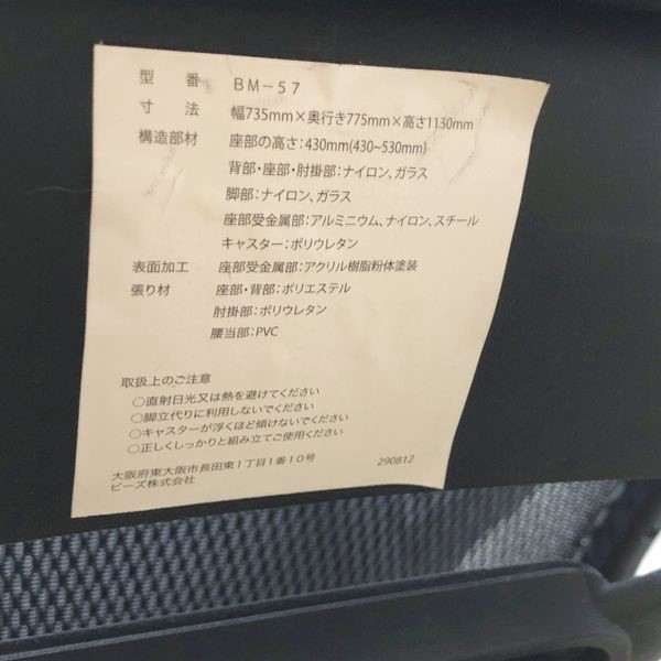 【中古】 BM-57 肘付ハイバックチェア 384695