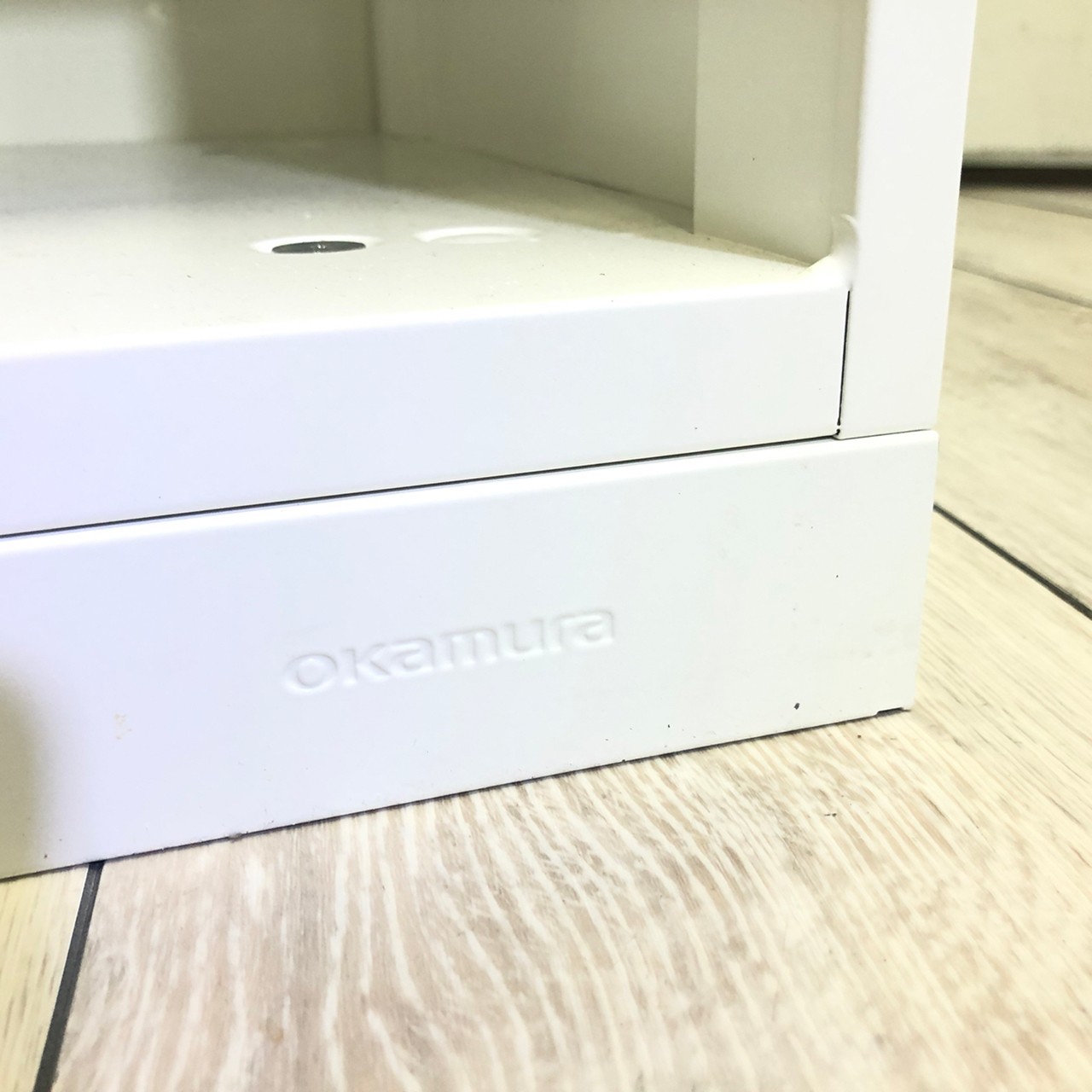 【オフィスの書類をスッキリ整理! 扉の無いタイプなので資料探しがラクラク!】■オカムラ(okamura)製 レクトライン(Rectline)シリーズ オープン書庫 ローキャビネット ■色:ホワイト ※扉外し商品のため外し跡がございます。