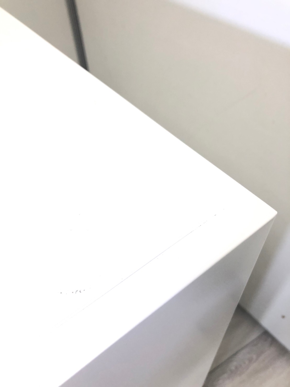 - 目立つ箇所あり傷・凹みが多数、深い傷・凹みが一部ある。(例、天板、正面、背部、サイド部分にある。)