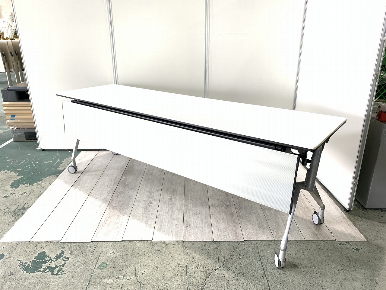 幅2100mm 幕板付き スタックテーブル フォールディングテーブル ホワイト キャスター付き 2~3名向け- 東大阪店