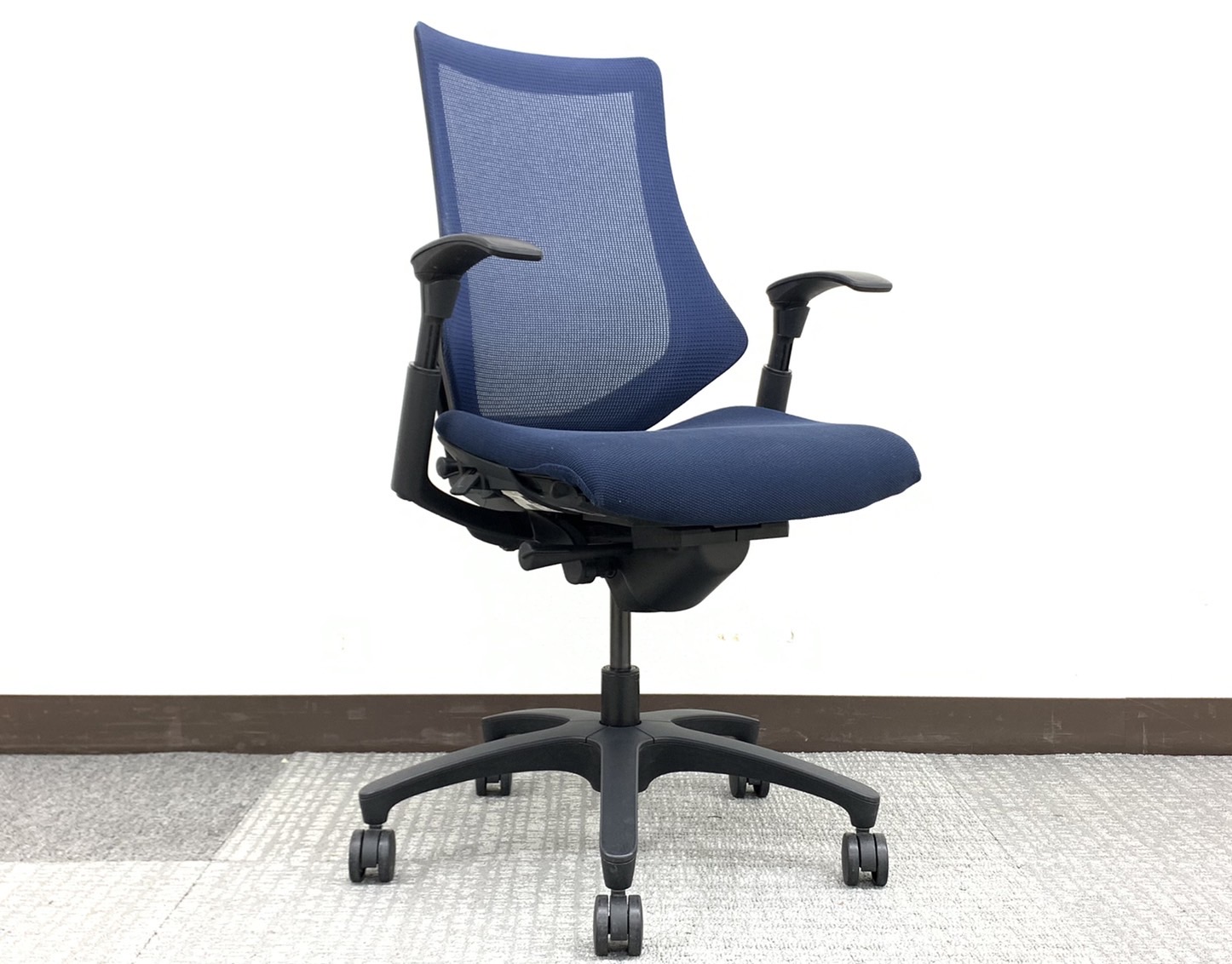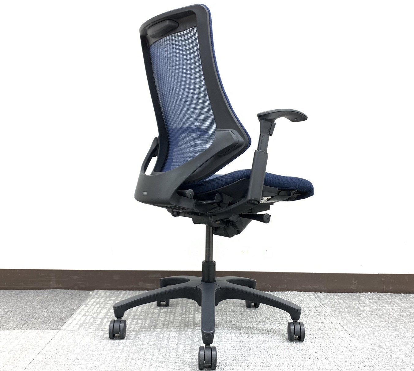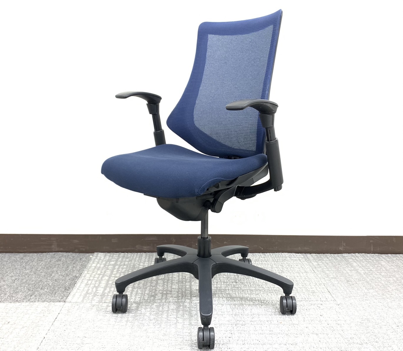 入替セール品につきお値下げ!【厚めの座面が優しく包み込む!機能充実のハイパフォーマンスチェア!】■イトーキ(ITOKI)製 エフクロスチェア 肘付 ハイバック ■固定肘 ■ブルー×ブラックシェル