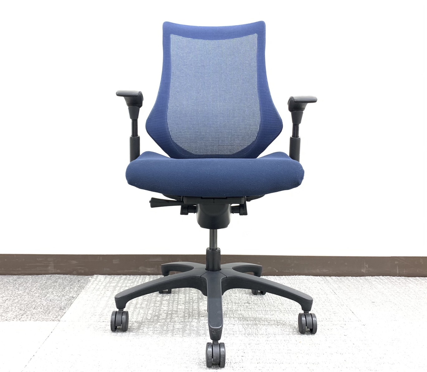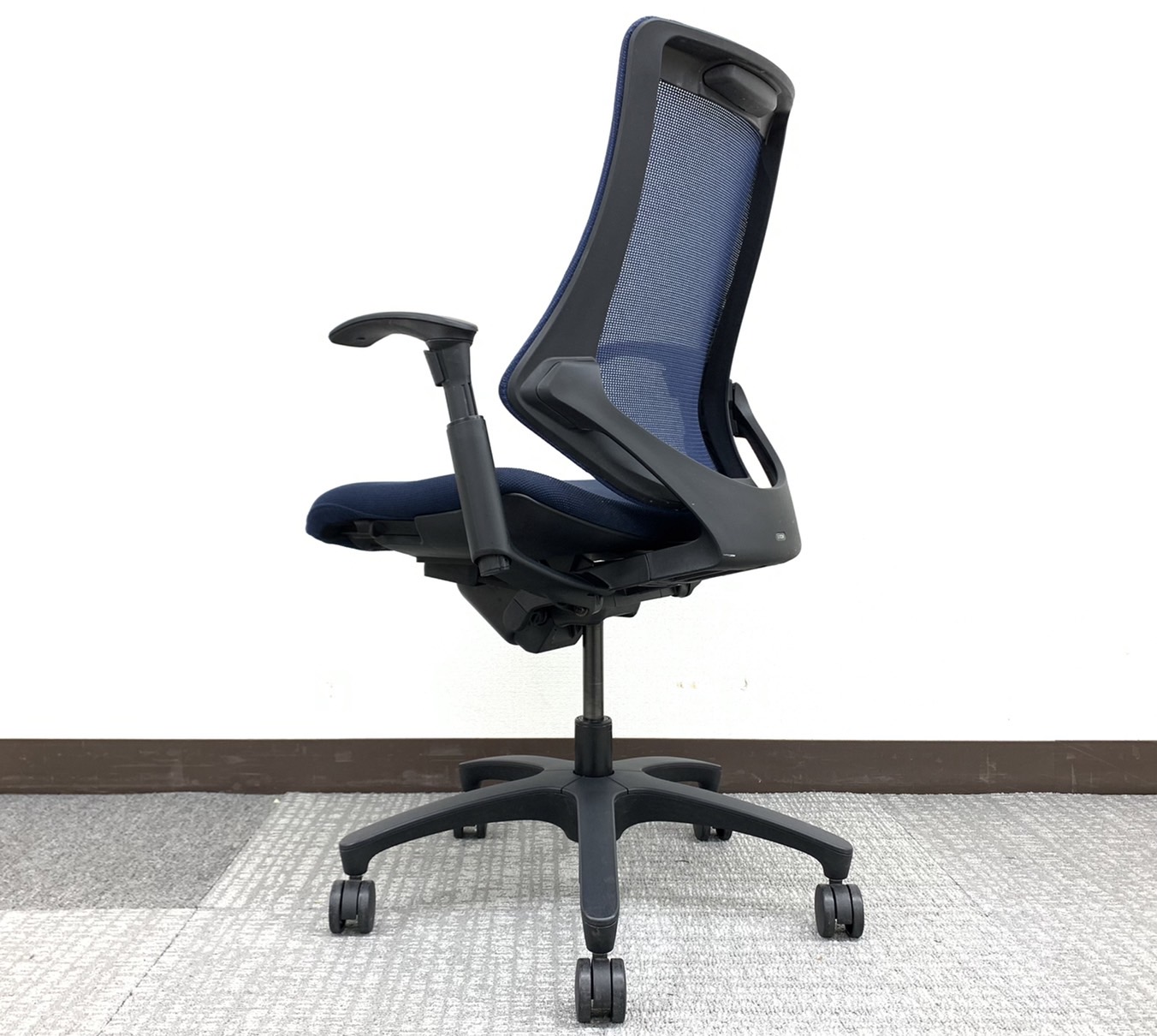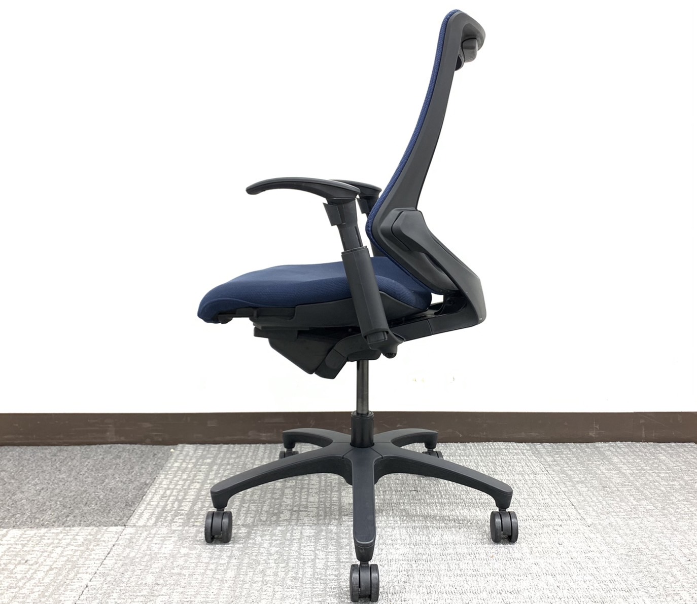 入替セール品につきお値下げ!【厚めの座面が優しく包み込む!機能充実のハイパフォーマンスチェア!】■イトーキ(ITOKI)製 エフクロスチェア 肘付 ハイバック ■固定肘 ■ブルー×ブラックシェル