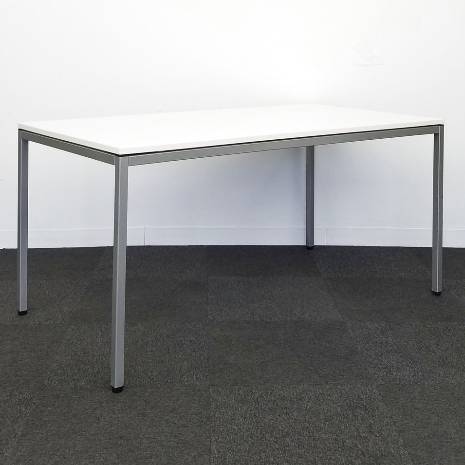 【2台限定】【会議や打ち合わせにオススメの人気ミーティングテーブル!シンプルなデザインで様々な空間にフィットする定番商品!】■オカムラ(okamura)製 トレッセシリーズ ミーティングテーブル 会議用 W1500×D800㎜ ■ホワイト/4本脚:シルバー