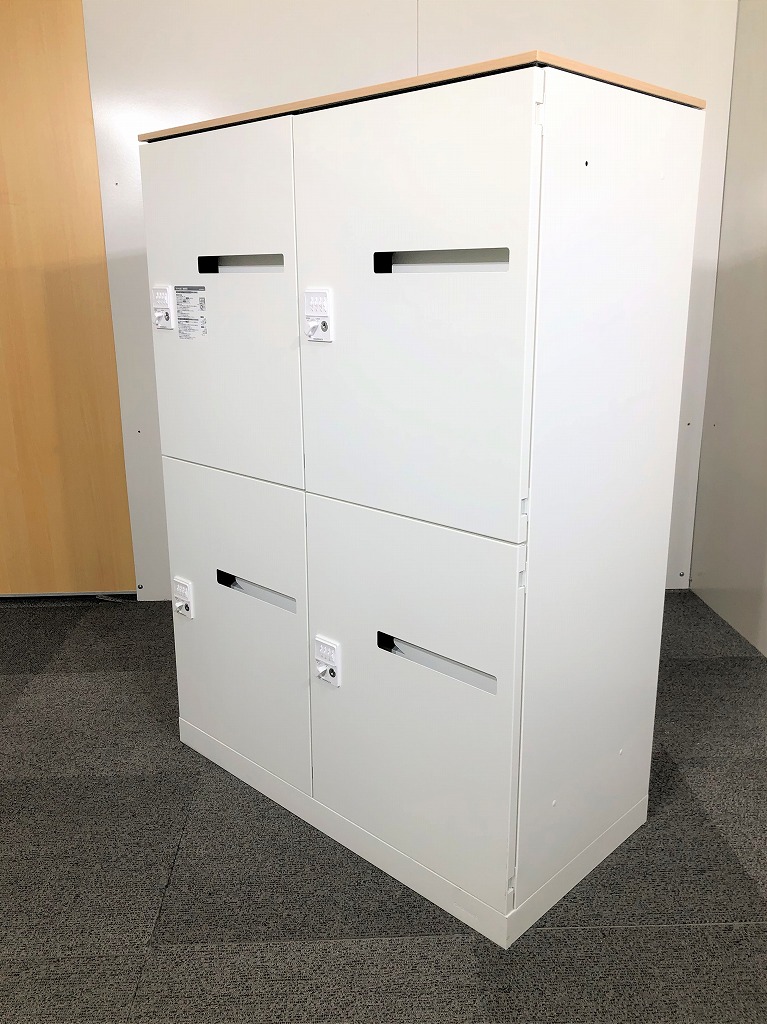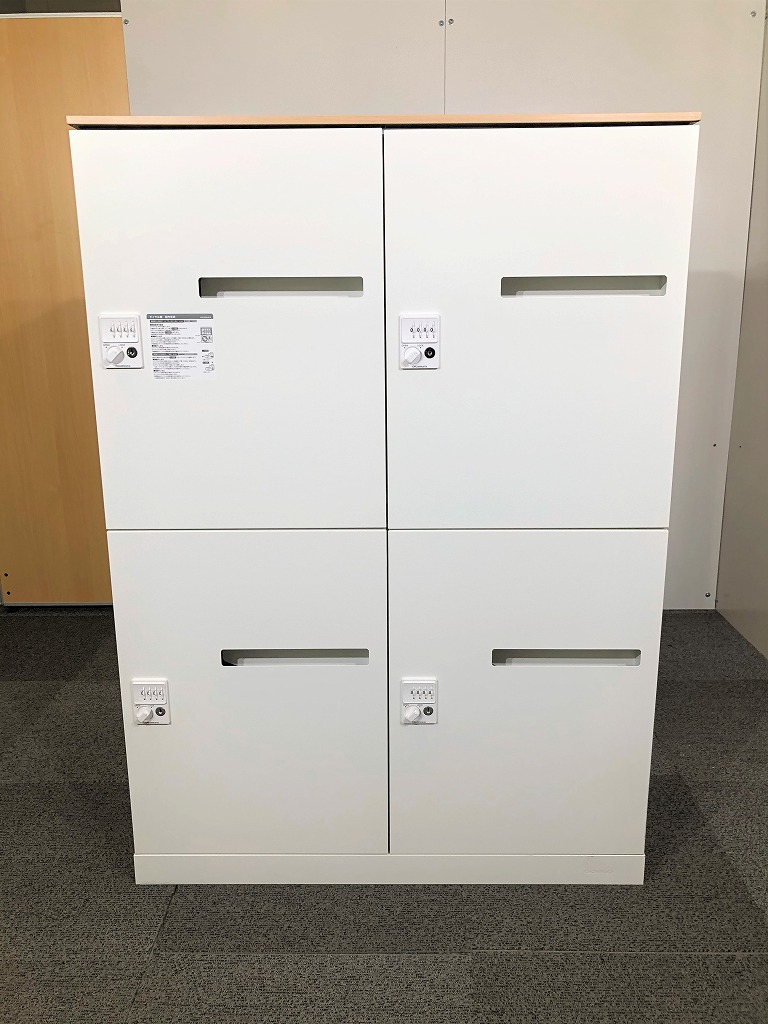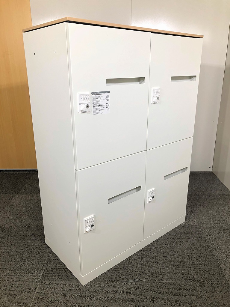 【商品入替のため、残り4台限り】オカムラ製 レクトライン ホワイト 4人用 投函口有り ダイヤル錠 ナチュラル木目調天板 フリーアドレスオフィスの必需品! ダイヤル錠式で鍵の持ち運び要らず! 4人用パーソナルロッカー!!※非常解除キーはついていません
