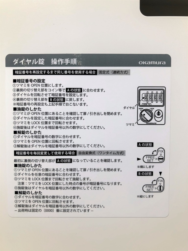 ・こちらの商品はダイヤル解除キーは別売りとなります。