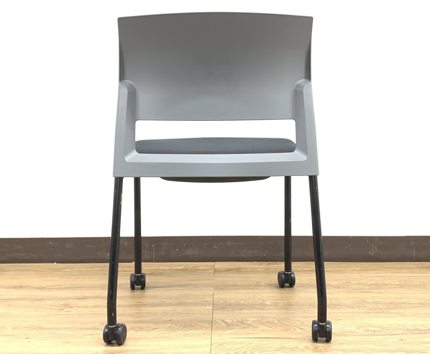【12脚入荷】モノトーンブラック&グレーカラー!スタッキングチェア※キャスター付き仕様◆StealCase製【RP】- 埼玉本店