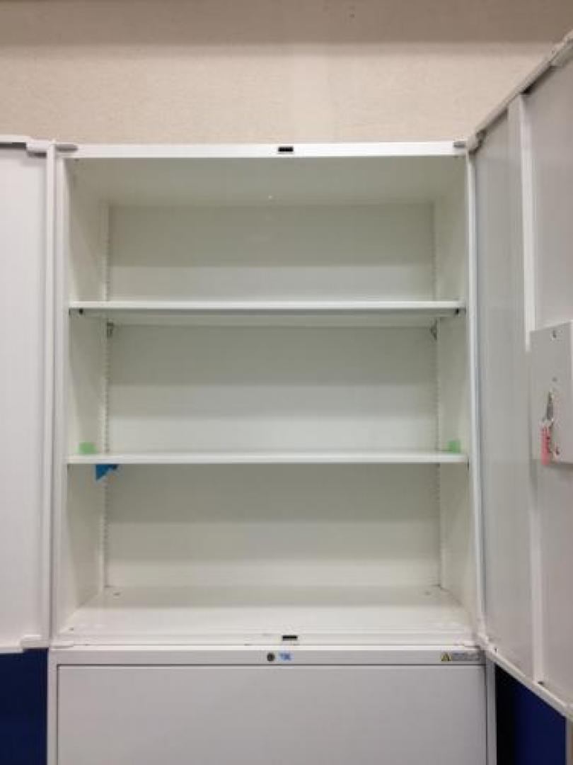 - 一部不具合ありそ引出の開閉不可、施錠不可、棚板無しといったの書庫の本来の効用を果たすための機能以外の一部が使用不可(例、扉、引出の開閉がしづらいなどがある。 )