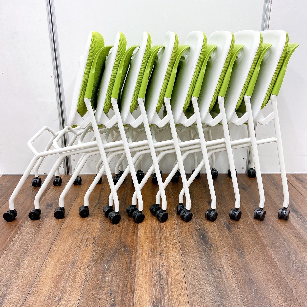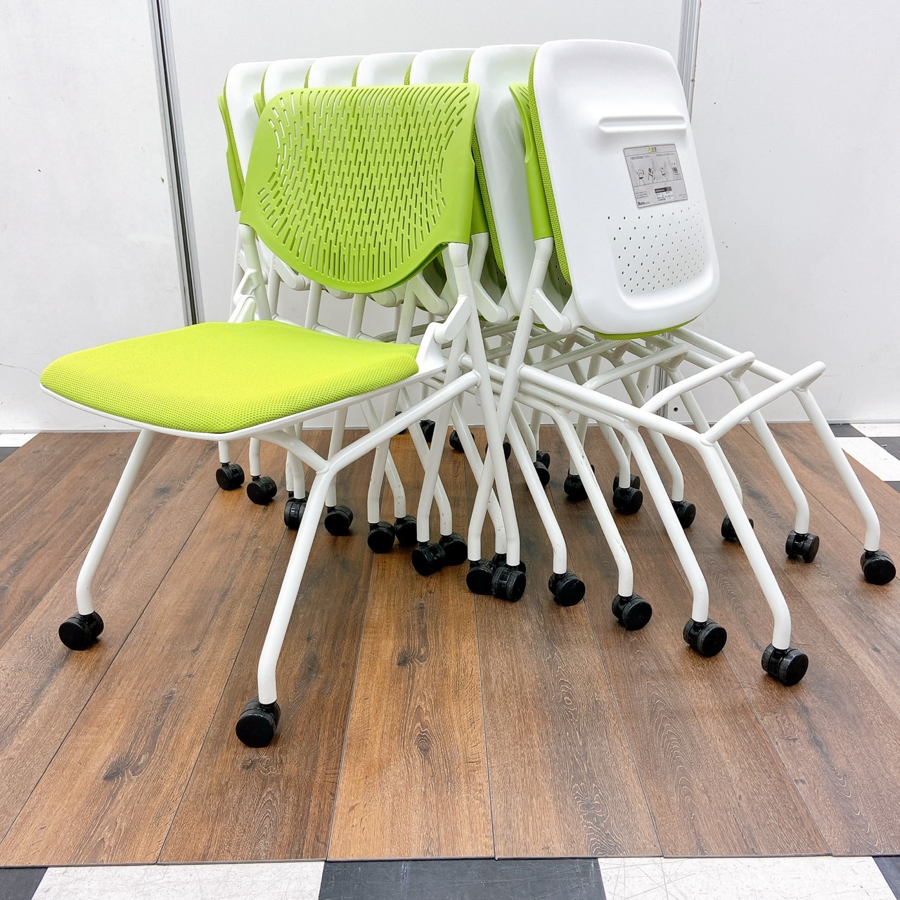 【中古では珍しい8脚セット!通常価格より10%OFF!!】【座面が折り畳めるネスティングタイプ!】オカムラ(okamura)/ルナ(Runa)/グリーン/ネスティングタイプ- 埼玉本店