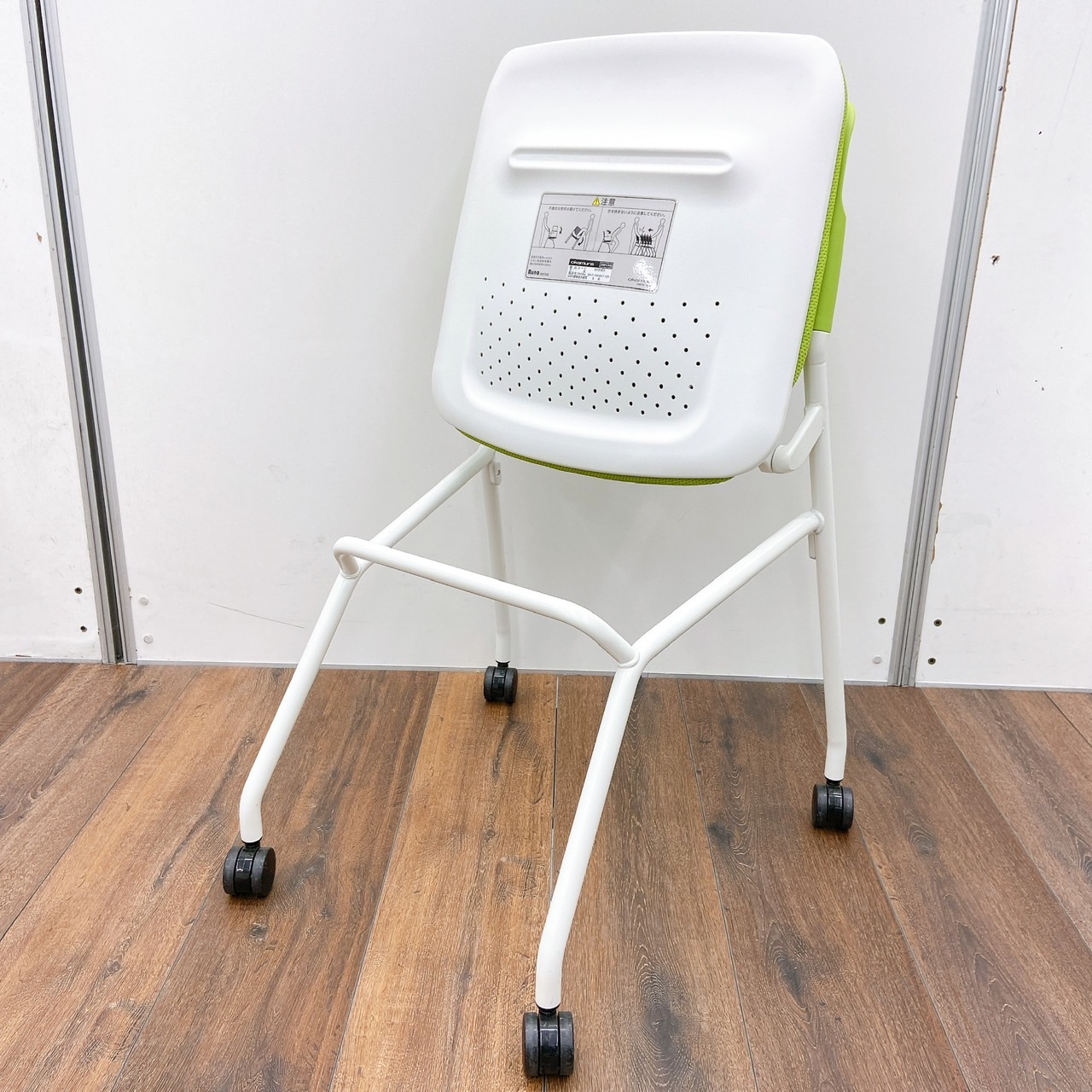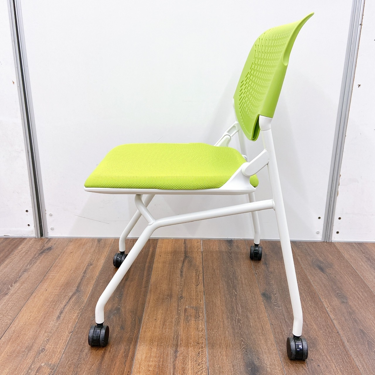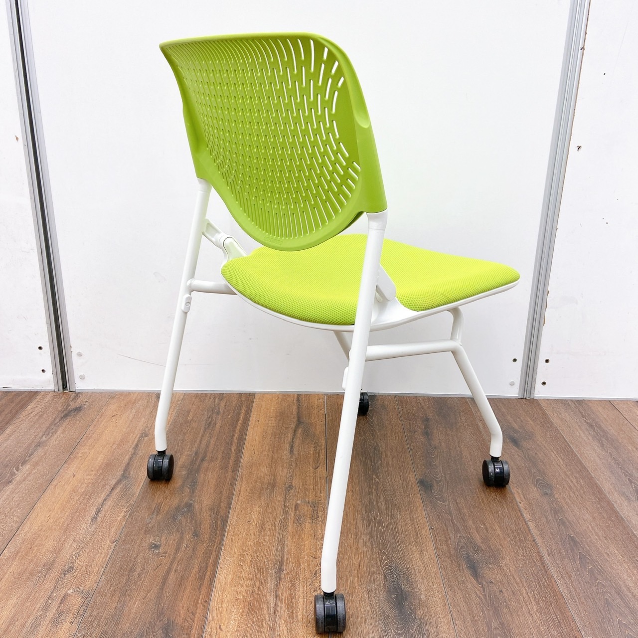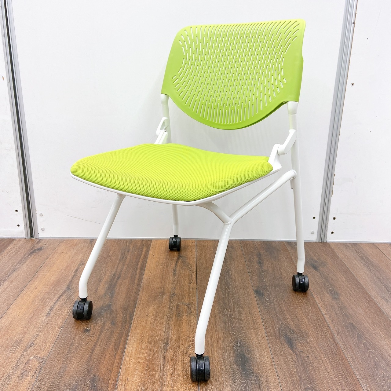 【T11】【T10】【商品入替のため、残り6脚限り】オカムラ製 ルナシリーズ ライムグリーン ホワイトフレーム 軽快なデザインが人気 ネスティングチェア!!