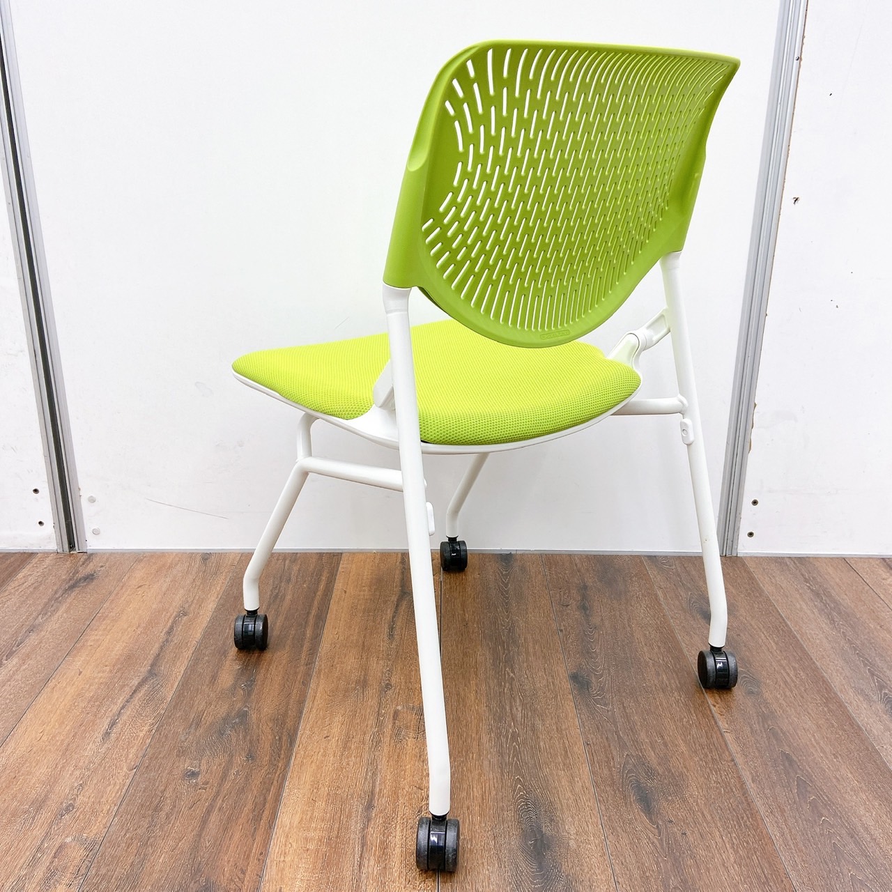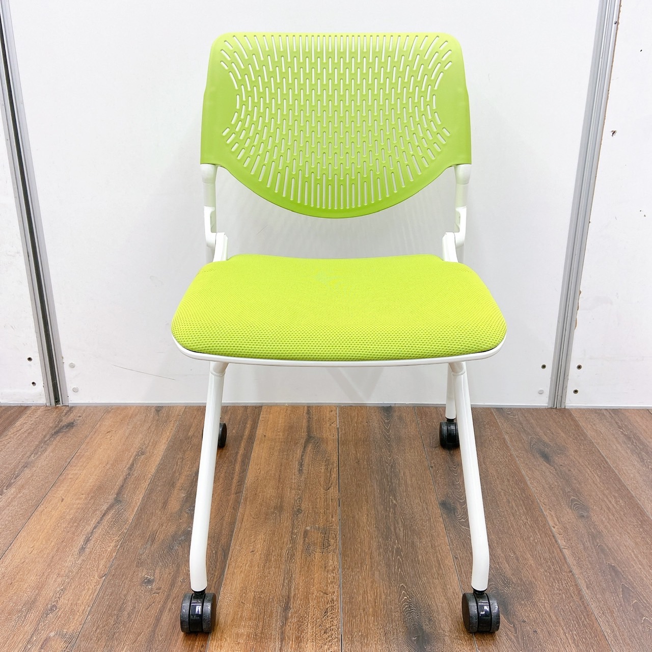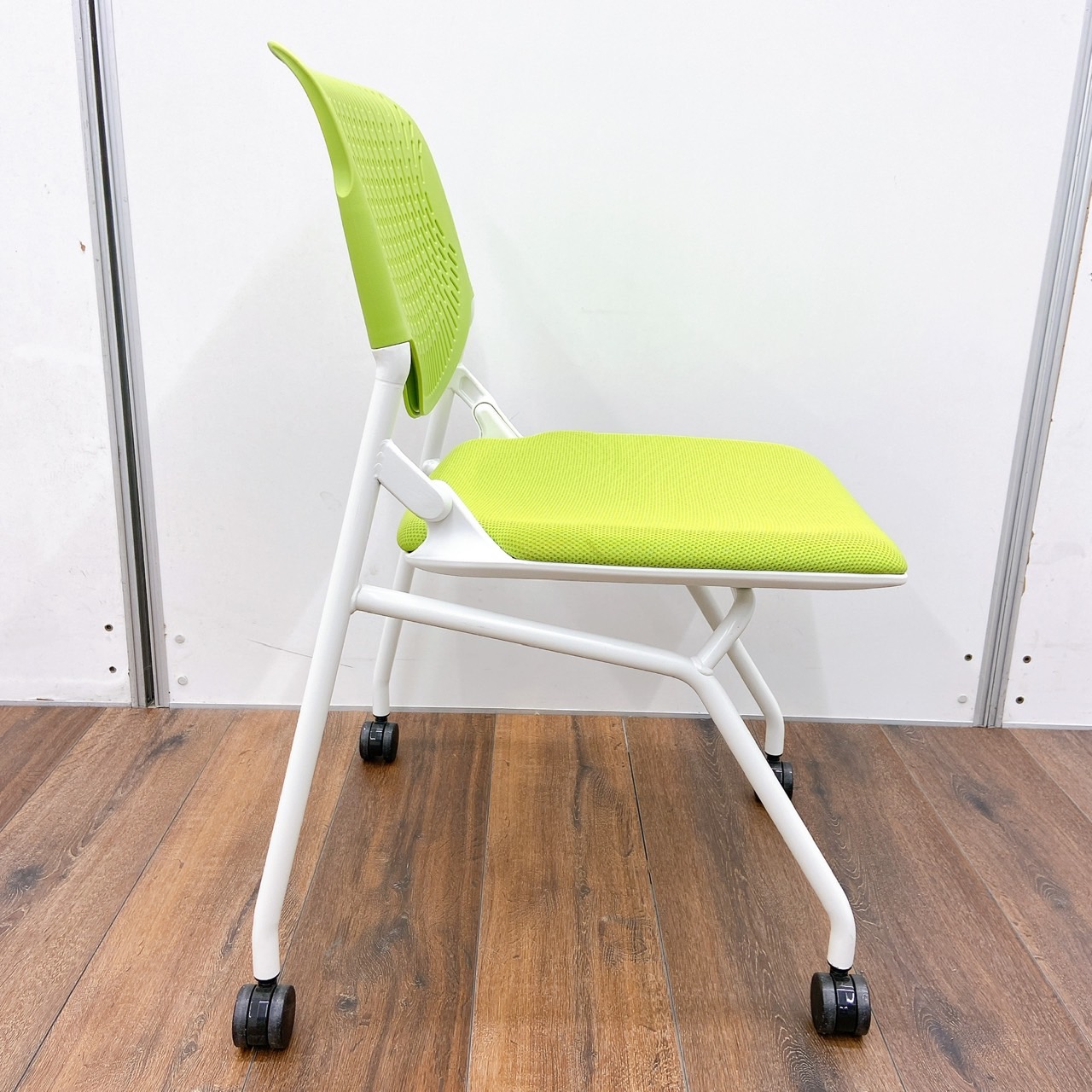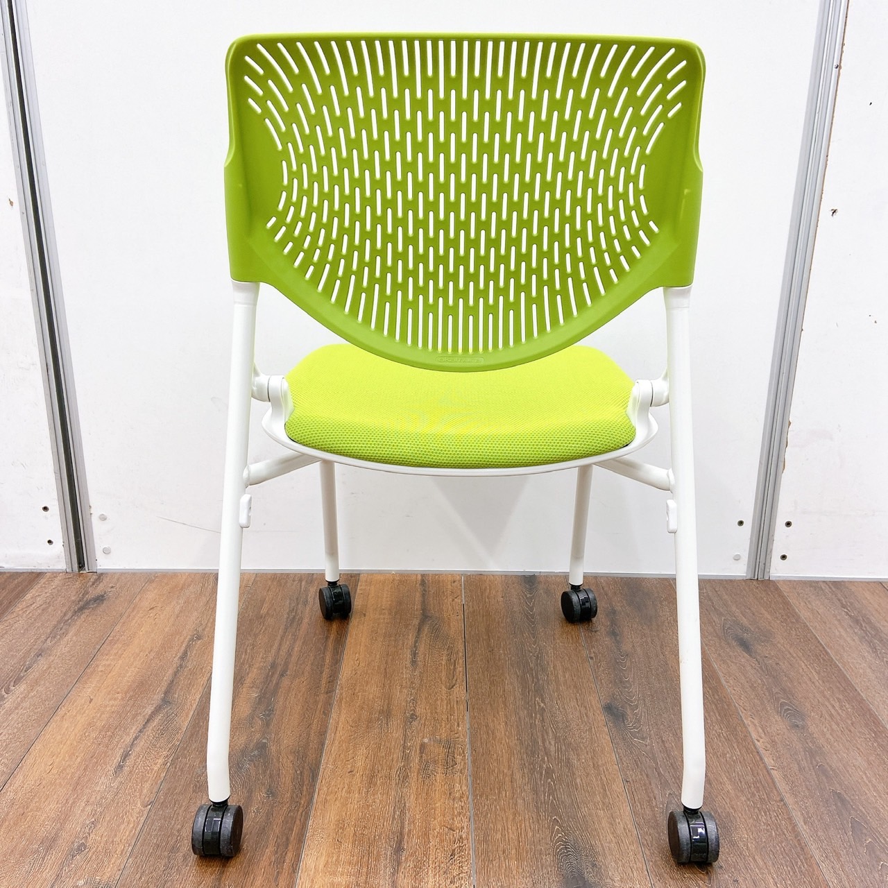 【T11】【T10】【商品入替のため、残り6脚限り】オカムラ製 ルナシリーズ ライムグリーン ホワイトフレーム 軽快なデザインが人気 ネスティングチェア!!
