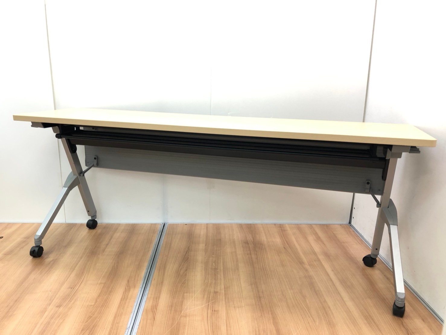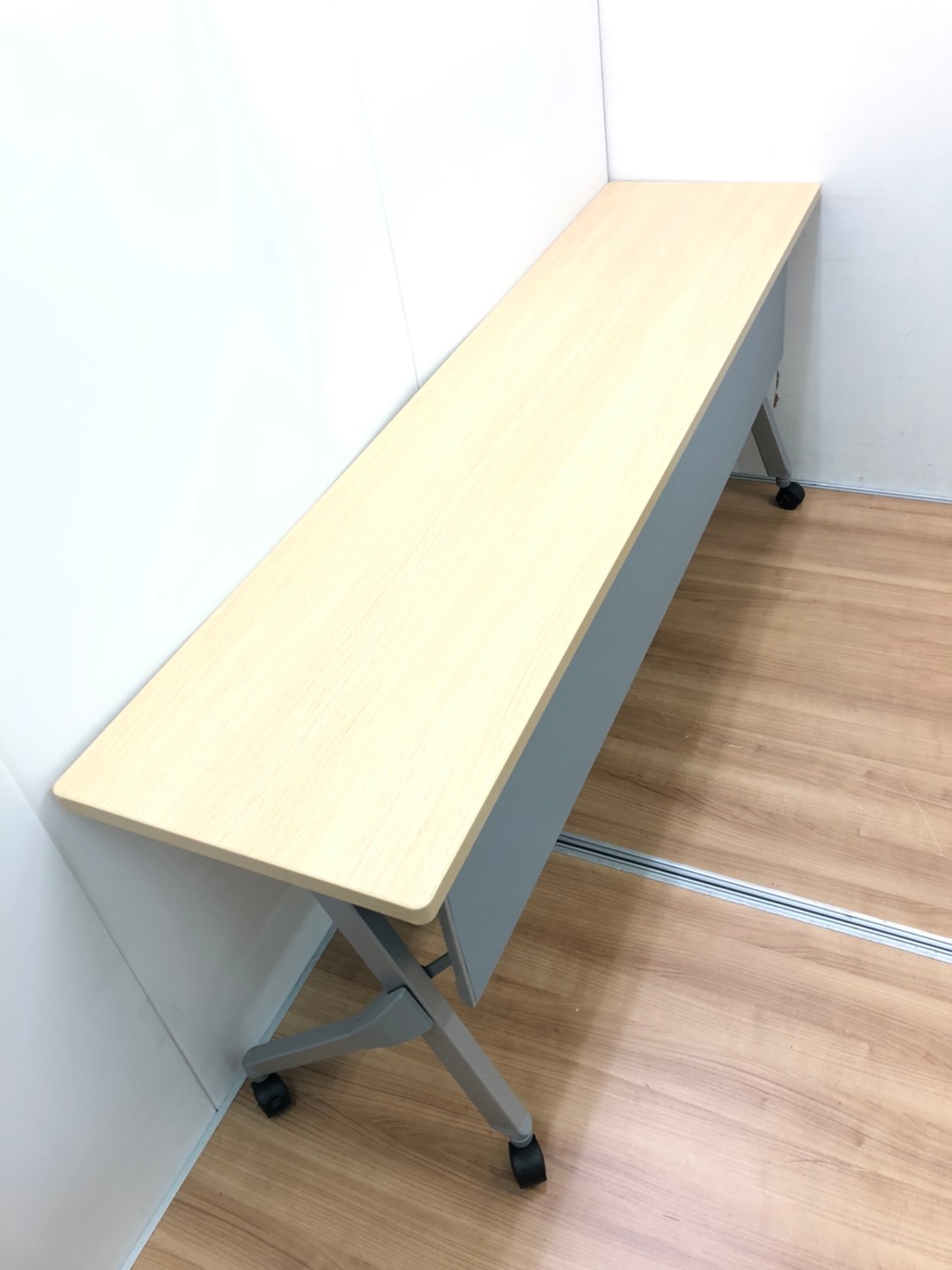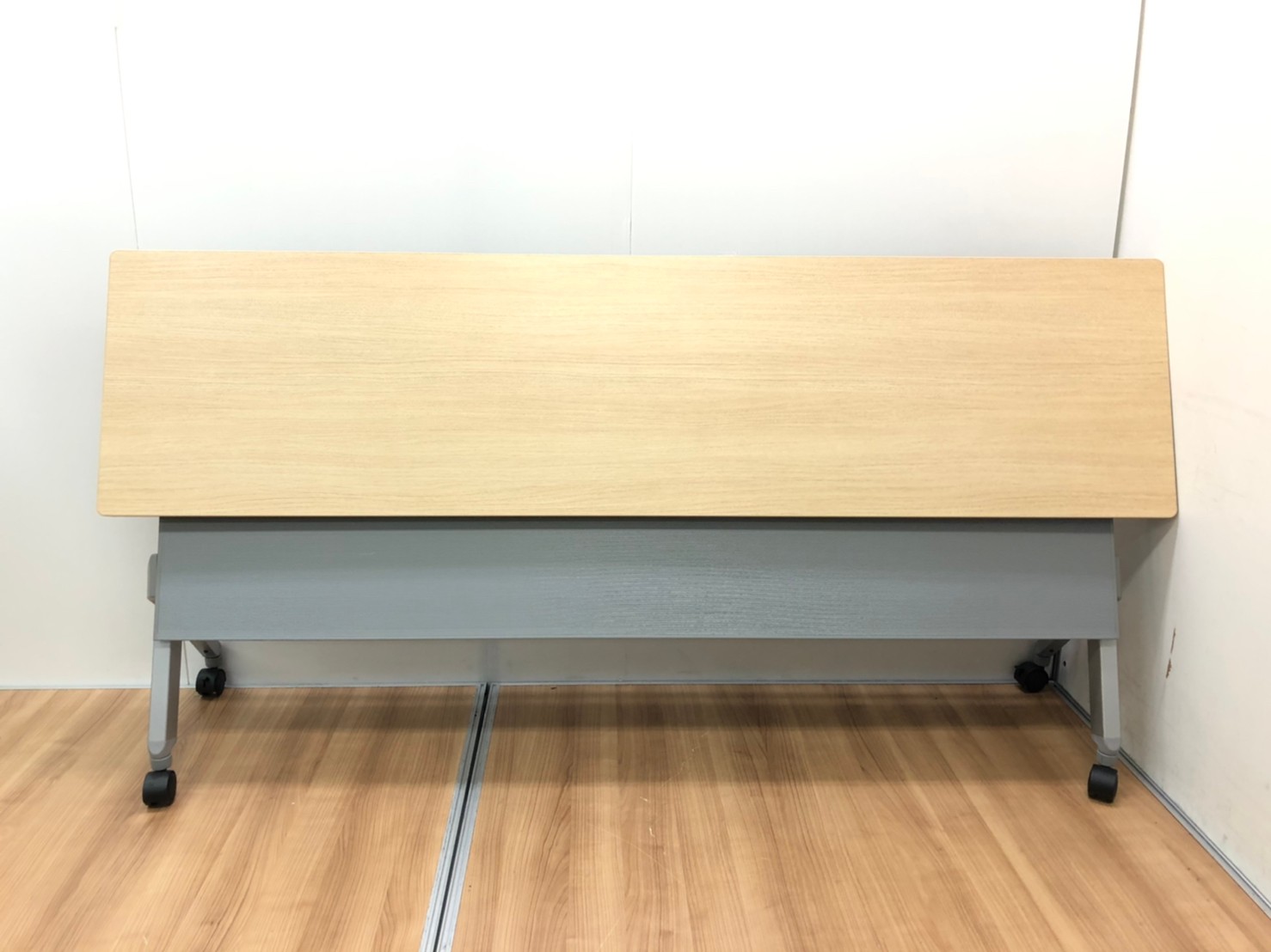 【W1500の折り畳みテーブルが入荷!】◆オカムラ/フラプター ナチュラル 木目 サイドスタックテーブル 収納 中古 博多 天神 九州最大級 オフィスバスターズ