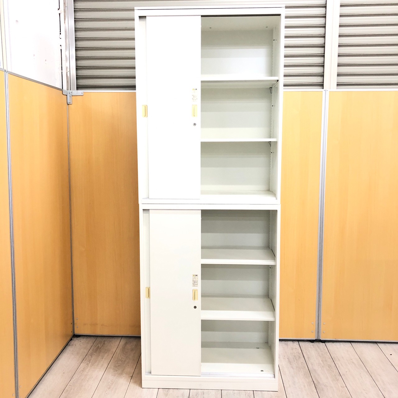 【スライド引き戸だから開閉スペースいらず!人気の書庫セット!】■オカムラ(okamura)製 レクトライン 上下引き違い 書庫セット ■ホワイト ■シリンダー錠 【弊社使用欄:A01035184/A01035183】【SN】