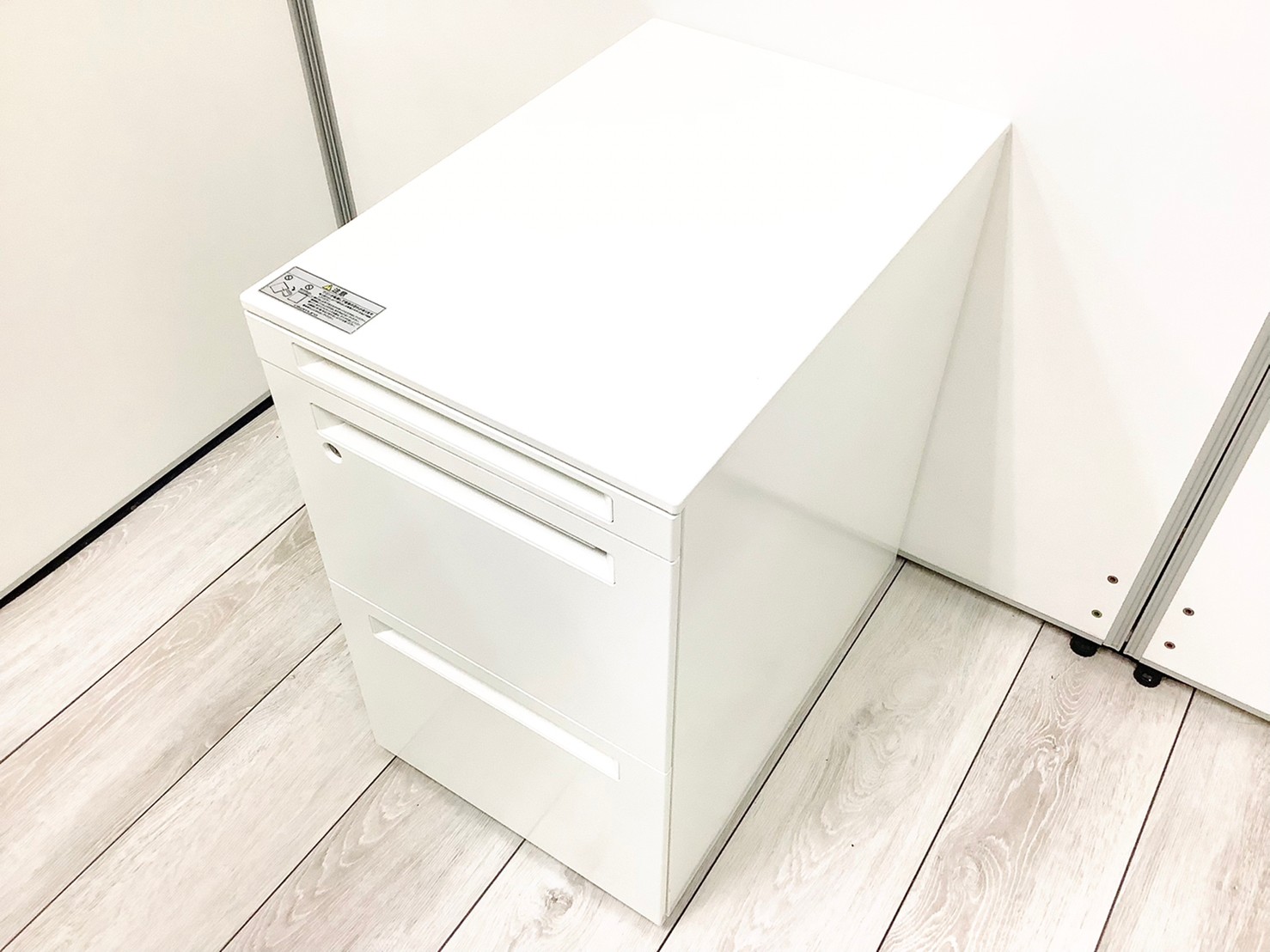 ★【取っ手日焼け】オカムラ製 アドバンス ホワイト フリアド用 W390xD575xH650サイズ シリンダー フリアドデスクや平机の収納力アップに最適! 3段ワゴン!!