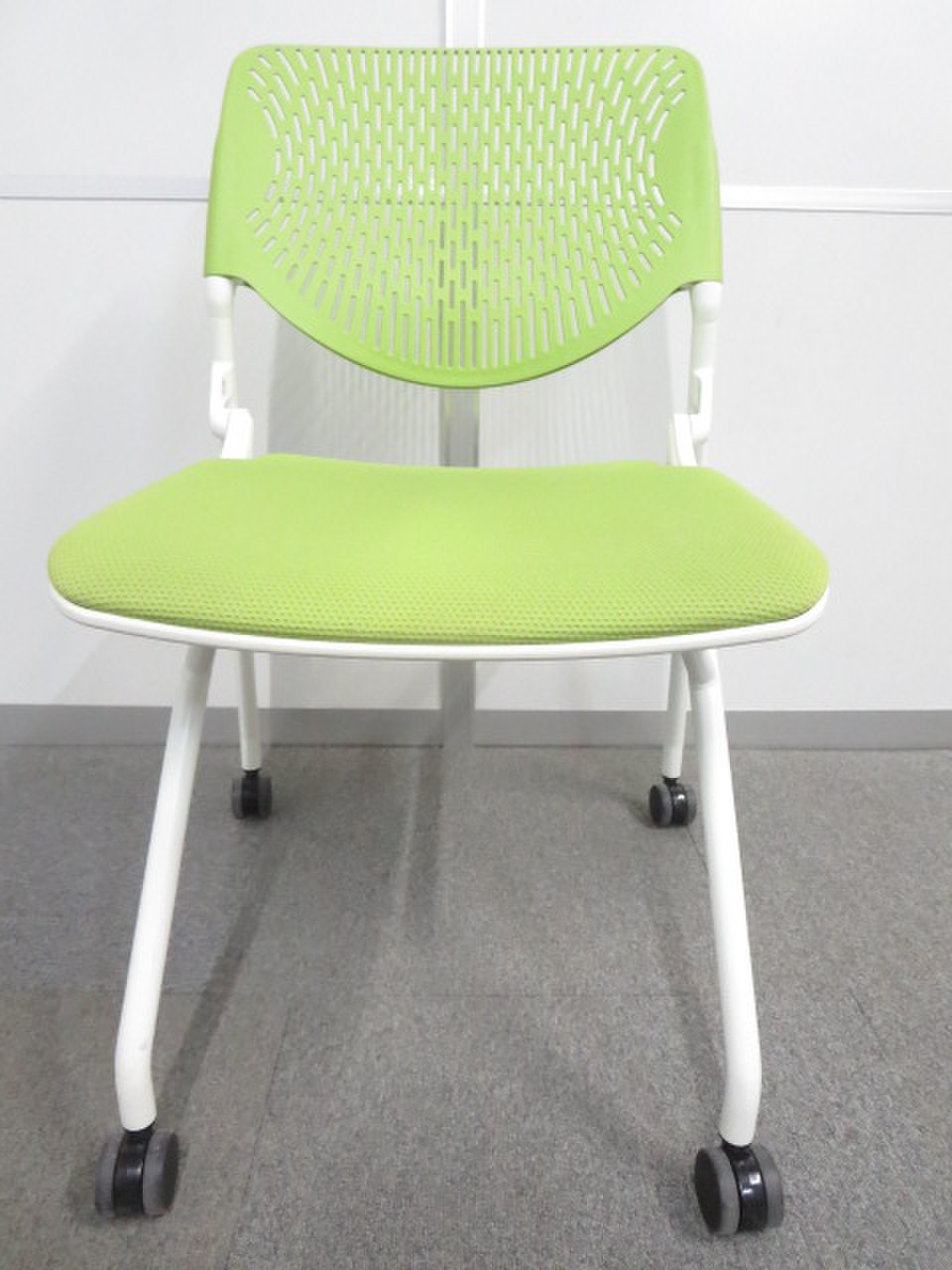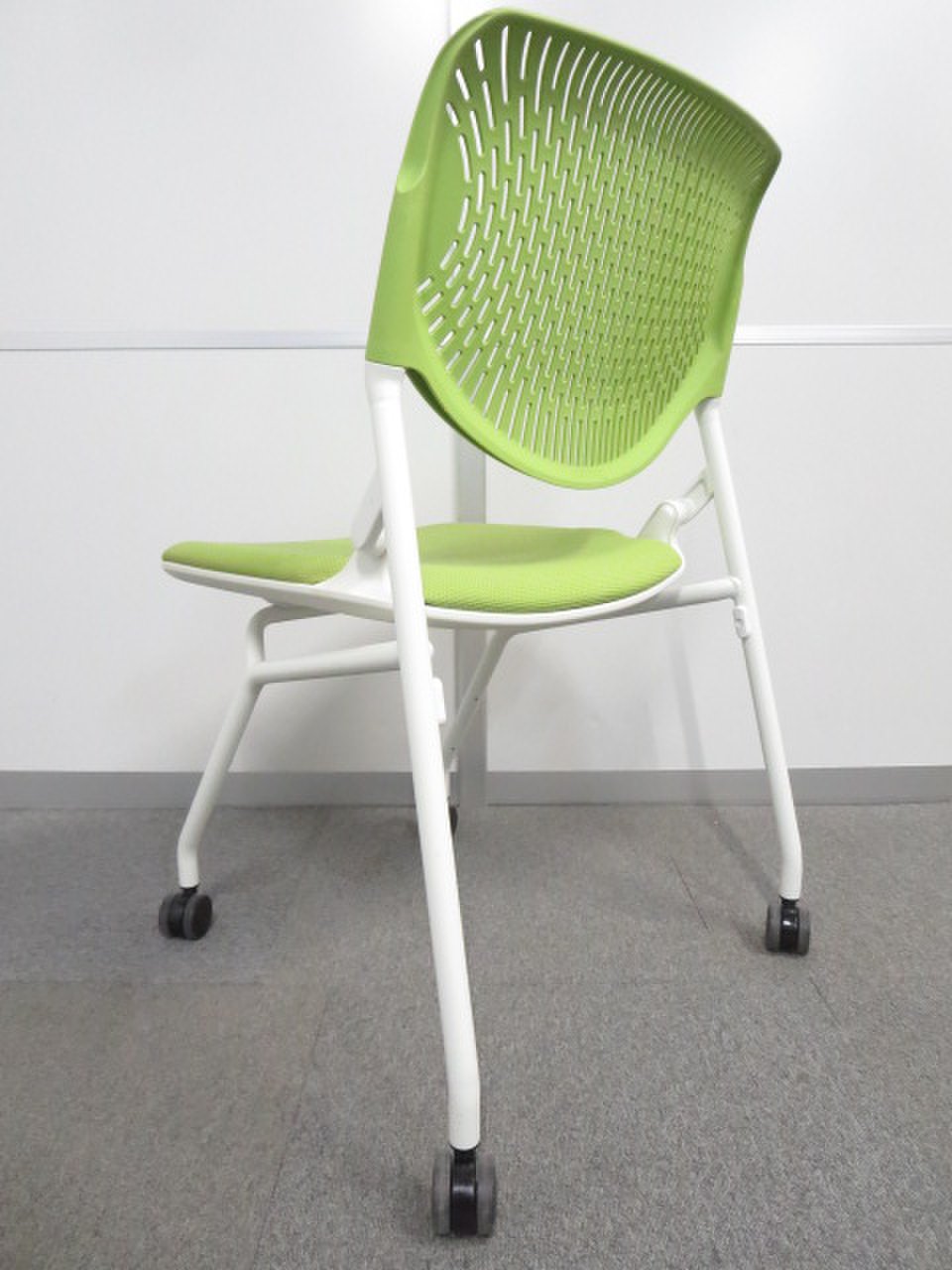 【ポップなデザイン!コミュニケーション活性化に!】■オカムラ製 ルナチェア ライムグリーンシェル ■【フレキシブルに使える!】ネスティングチェア!- 川崎店