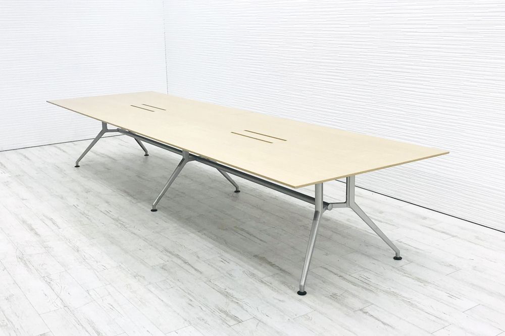 【KS】【美しいデザインが人気!】■イトーキ製 ミーティングテーブル W4000mm ナチュラル 配線ボックス付 ■パソコンを使用した会議にも対応! A00848795- 茨城南店