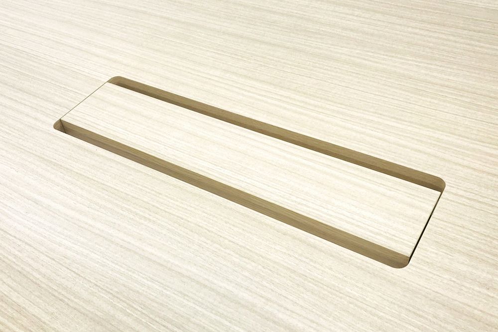配線取り出し口がありますので、テーブルの上をスッキリご利用頂けます。