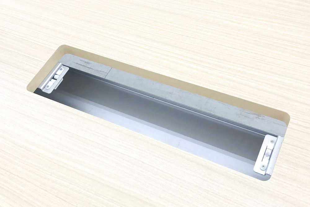 テーブル中央部の配線ボックスが付いており、ワイヤリングが簡単に行え、
