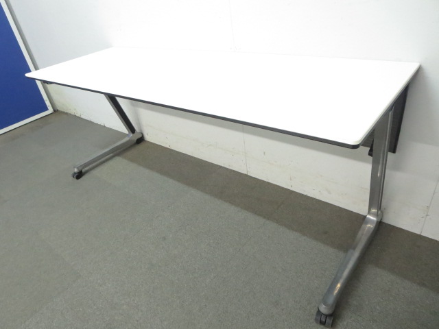 【KS】【フレキシブルに使える便利アイテム!】■オカムラ製 サイドフォールドテーブル W1800×D600mm 幕板付 ホワイト A00859859- 茨城南店