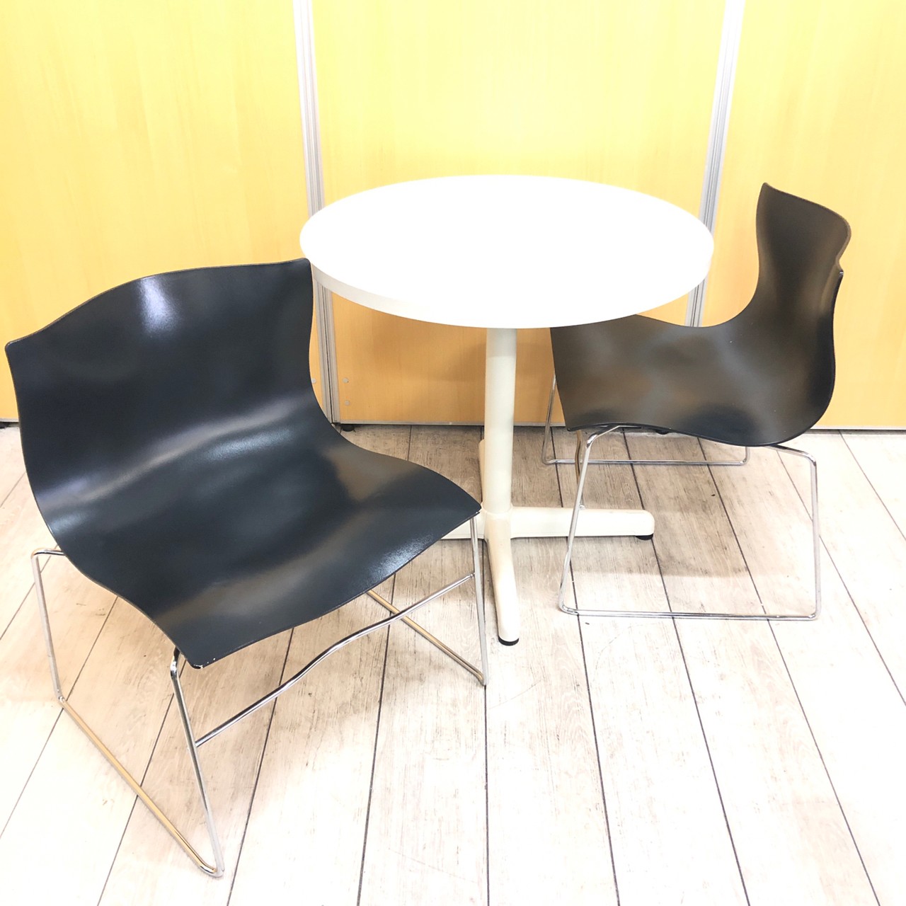 【ミーテイングテーブルと椅子のセット!】プラス ホワイト ミーテイングテーブル LM おしゃれ 丸テーブル 会議 noll社のミーティングチェア入荷!! Knoll Handkerchief Chair ブラック 傷有り おしゃれ ペーパーグリップテーブルと共にマッシモ・ビニエリの代表作 スチールワイアー製- 神戸・三宮店