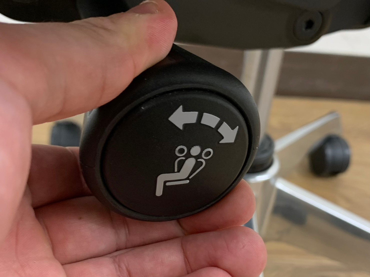 - 座面右下のダイヤル操作で、リクライニングの強弱調整が行えます。これまでのダイヤル式よりも、少ない回転数で、最弱?最強の調整が可能です。