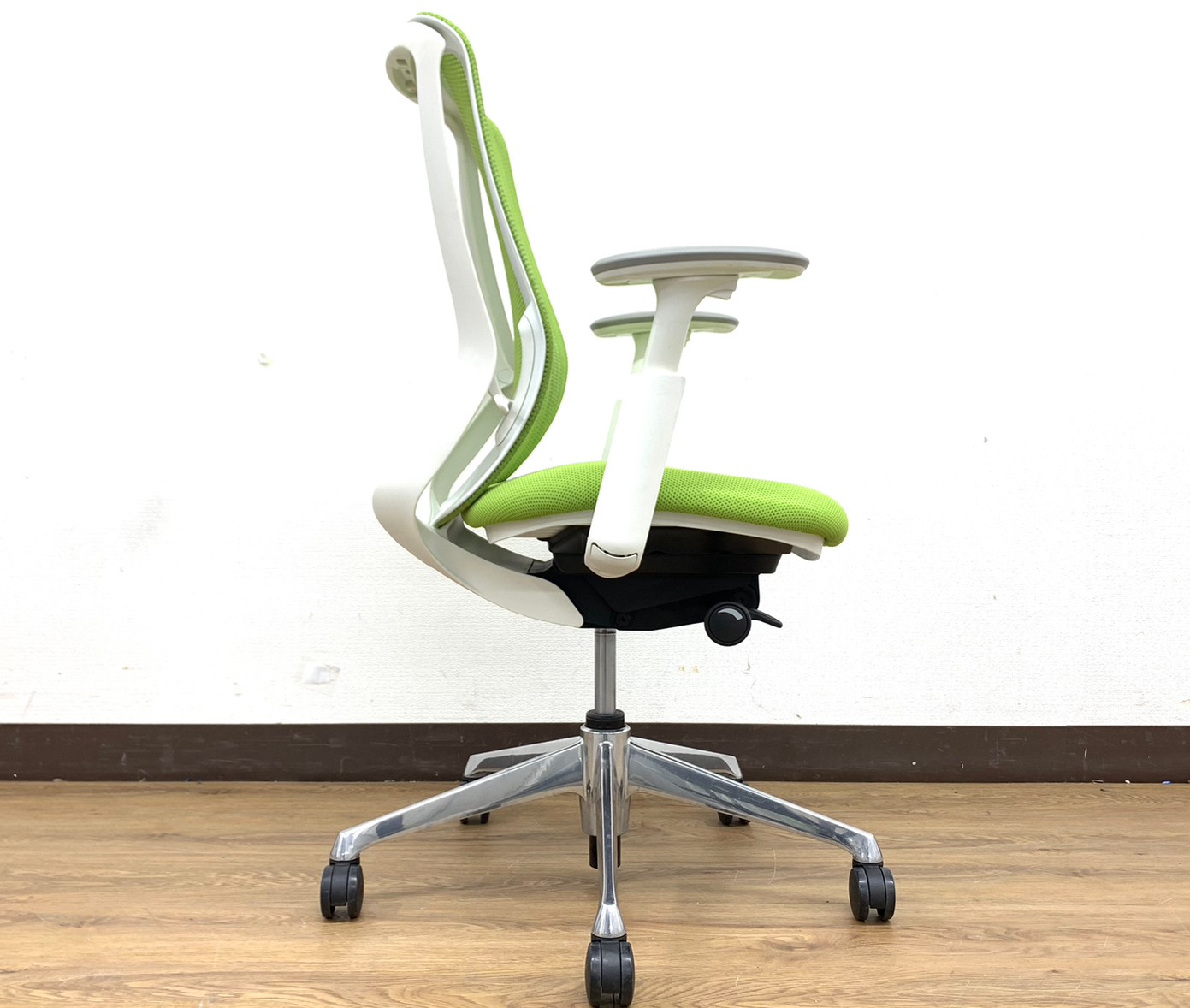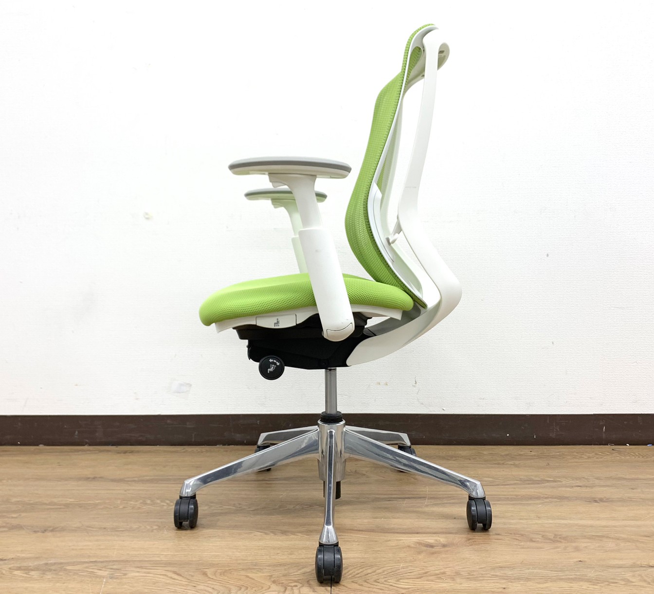 【在庫入替セール品】【人気のシルフィチェアヘッドレスト付きが1脚限定入荷!】オカムラ シルフィ ライムグリーン エクストラハイバック ホワイトフレーム デザインアーム(固定肘) 前傾チルト機能付き