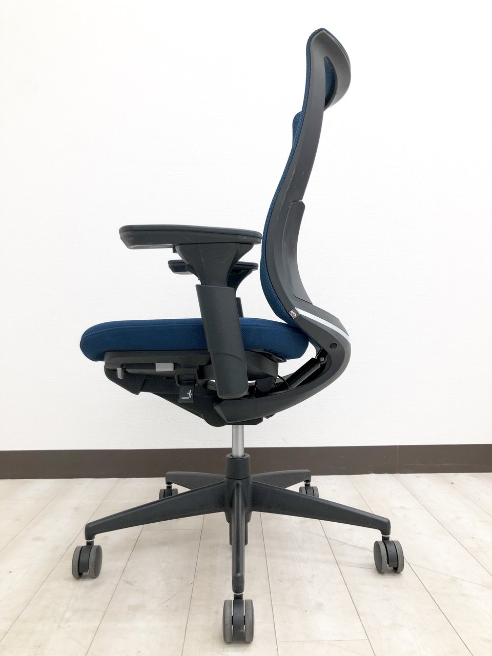大人な雰囲気のブラック&ブルーのカラーリングで、機能的かつ、高級感のあるチェアでございます。