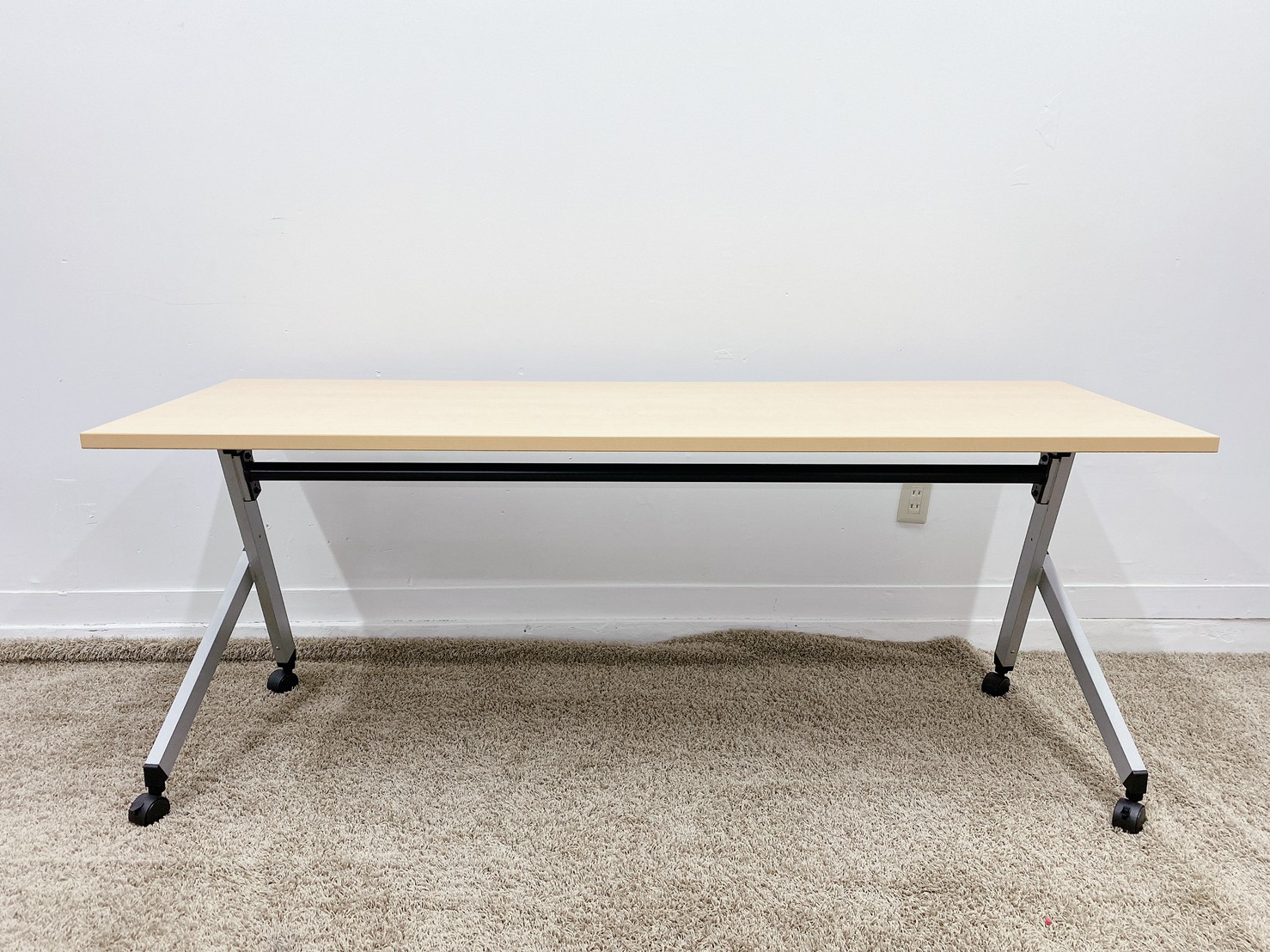 【幅1800サイズ】会議室やセミナーにおすすめです! 内田洋行/プラッテ/ナチュラル木目 キャスター付き 幕板付き テーブル 会議