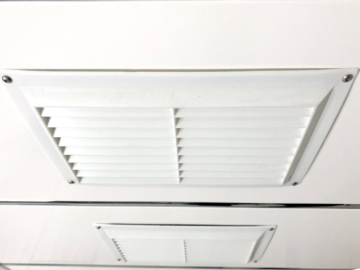 上2段の背面には後付けで、エアインテークついており、オーディオ機器などの排熱に有用です。