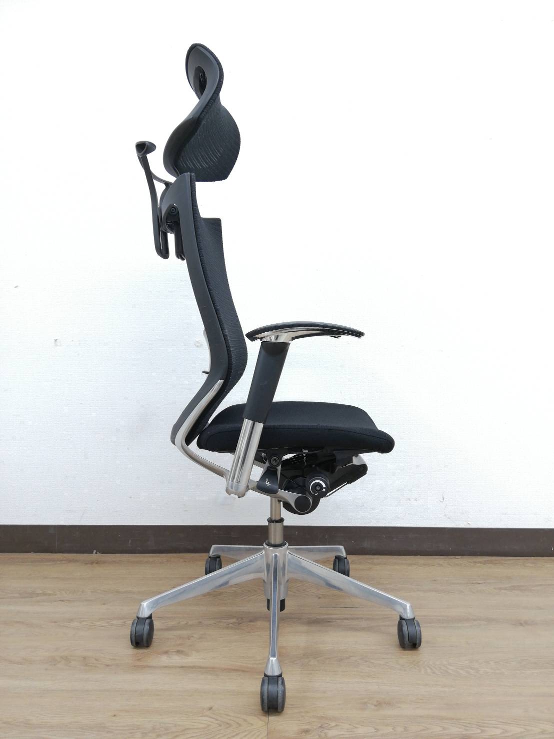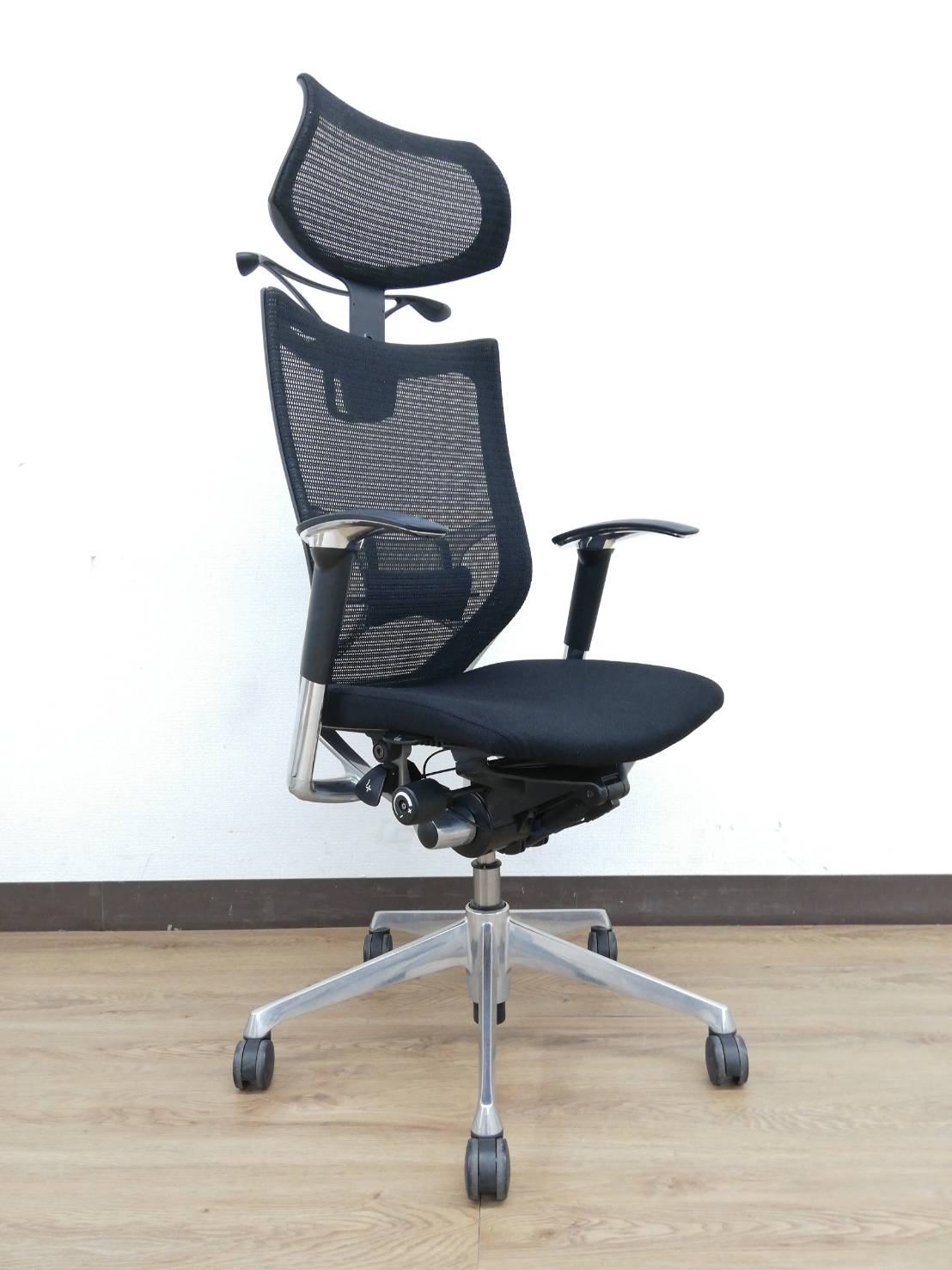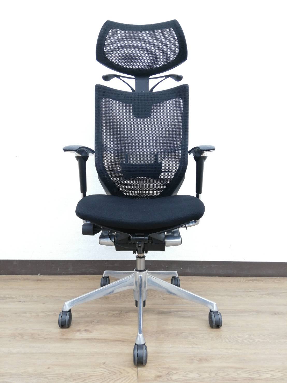 【オフィスの執務室、会議室におすすめ!】■オカムラ(okamura)製 バロン(Baron)チェア 肘付き ハイバック ■背・座面メッシュ ■可動肘 ■ヘッドレスト付き ■ブラック【硬めの座面が大人気!国産メッシュチェアの代表格!】