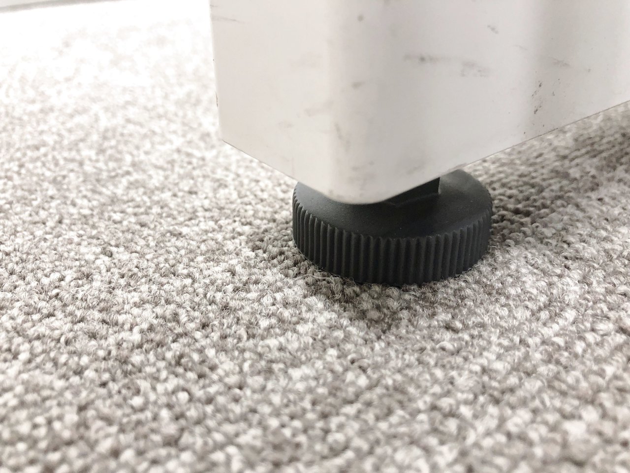- 地震時、センター引出しが飛び出さないよう、ラッチ機構を装備。脚はデスクの横ズレを軽減させる設計になっています。