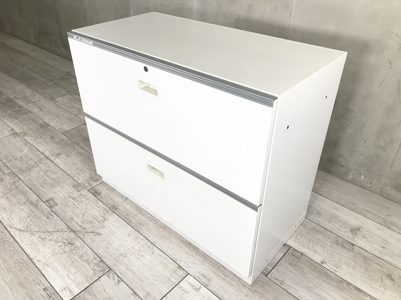 【珍しい2段ラテラルタイプ!】耐久性・機能性を兼ね備えたキャビネット!スペースにジャストフィットする引き出し型収納 ■イトーキ/シンライン/ホワイト シリンダー錠