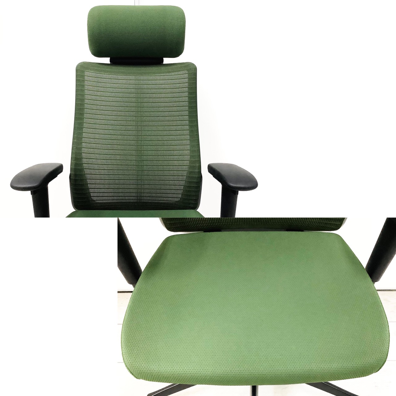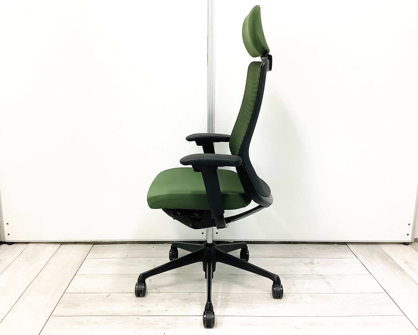 【ヘッドレスト付きならコレ!厚めのクッションで快適な座り心地を実現!】■オカムラ(okamura)製 コーラル(choral)チェア ■エクストラハイバック ■ヘッドレスト付き ■背メッシュ ■グリーン ■デザインアーム〈岐阜・愛知・三重・静岡・福井〉