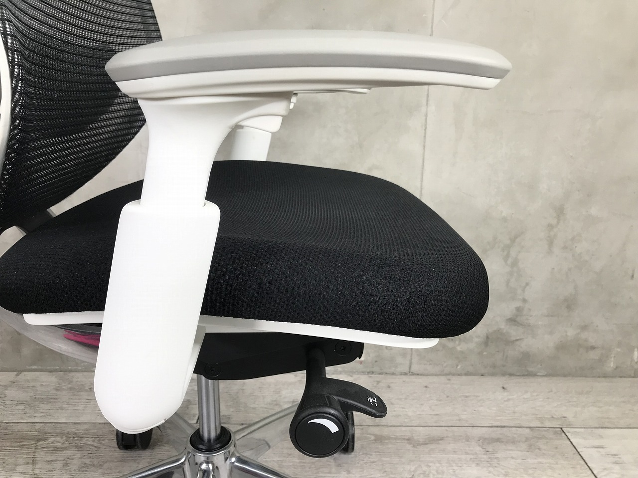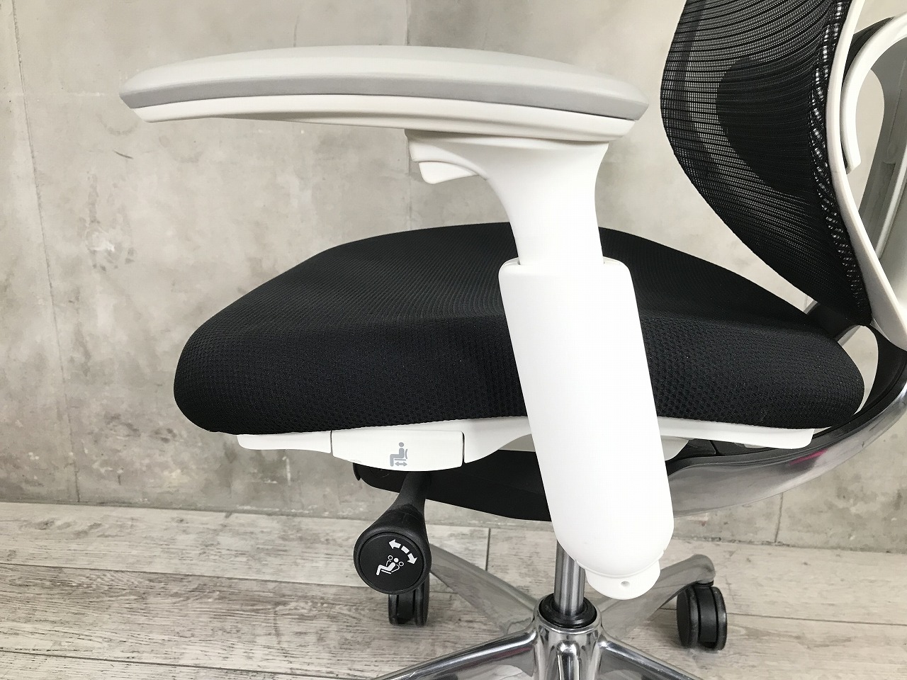 - 肘パッド部の上下(1D)、角度(2D)、前後(3D)、左右(4D)の調整が可能。可動幅は、上下100mm、内側20度、外側10度、前後40mm、左右片側25mmです。