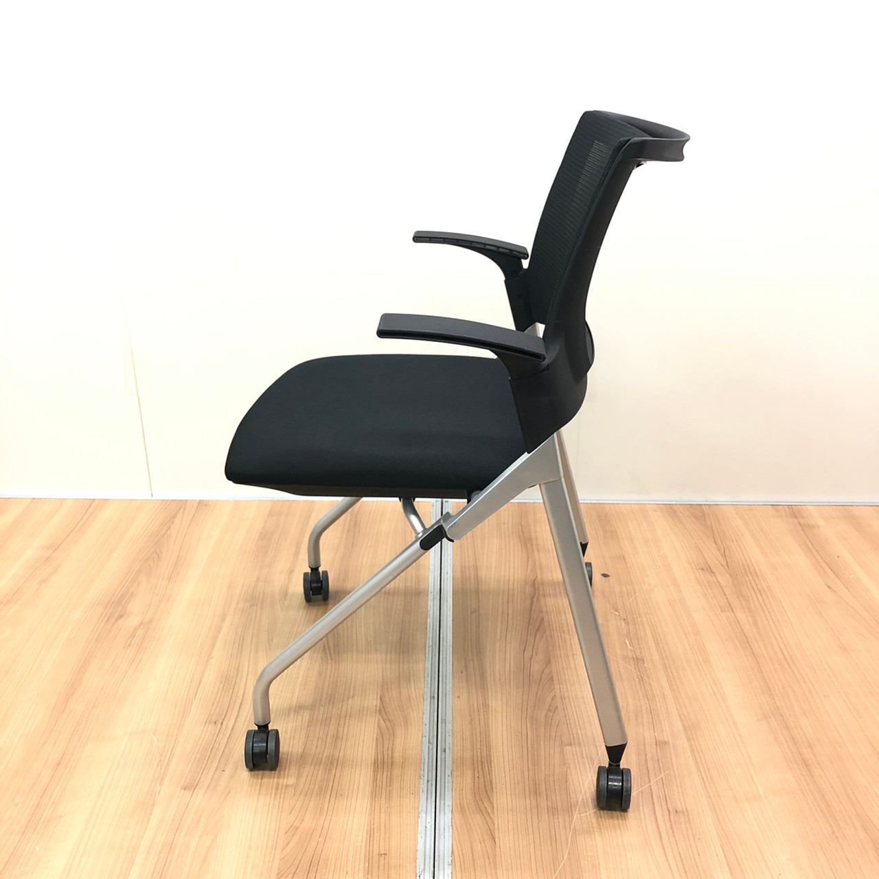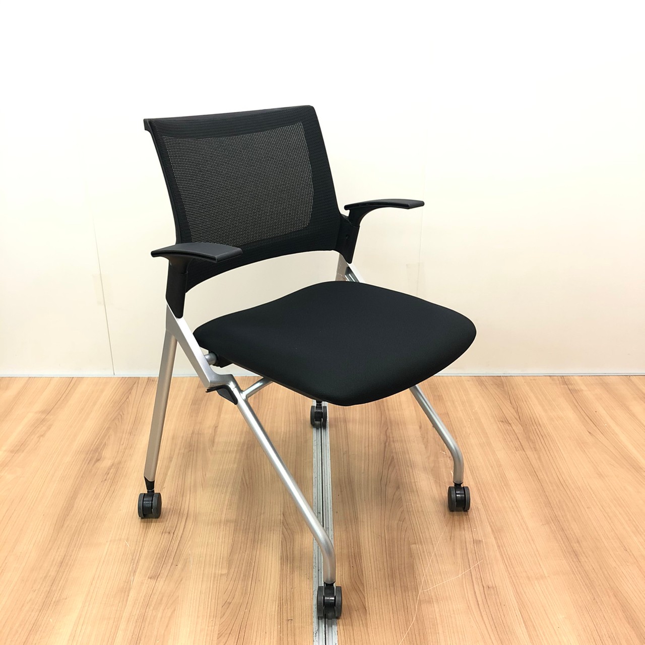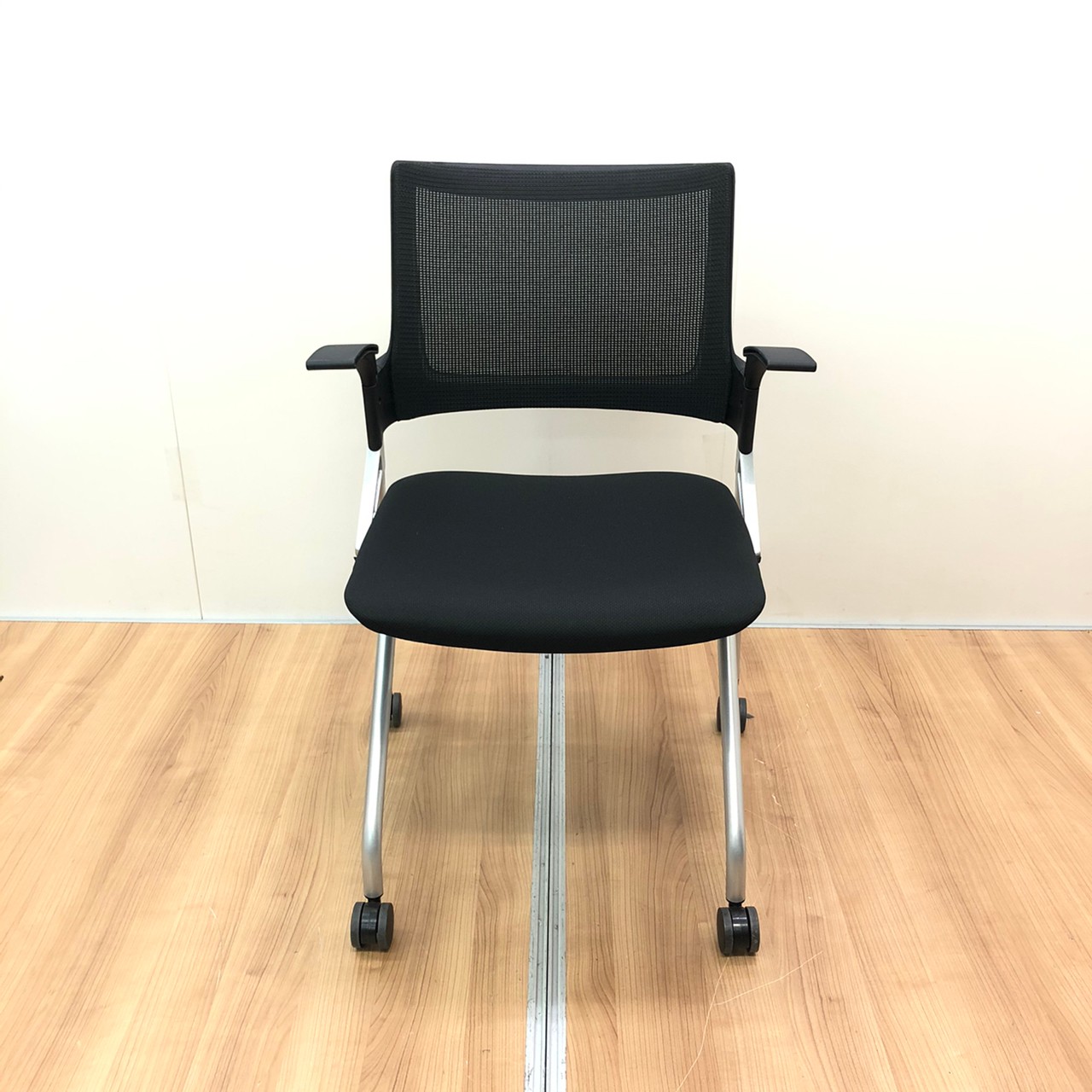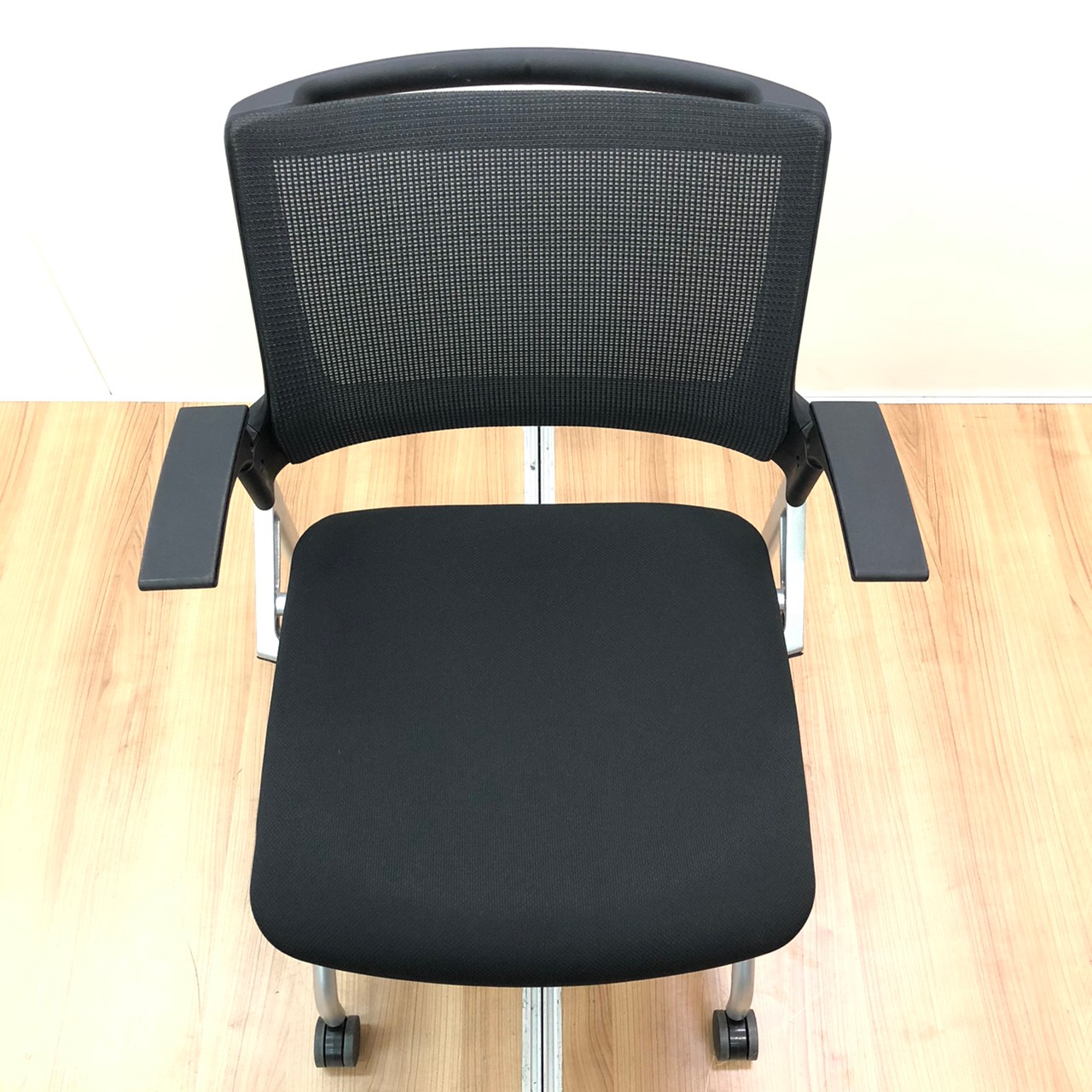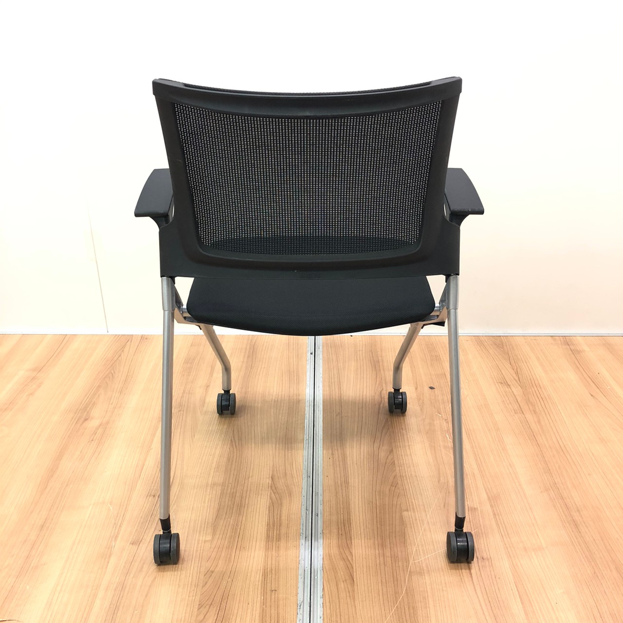 【メッシュタイプのミーティングチェア!】肘かけ付きでリラックス!■イトーキ製 ネスティングチェア 肘付 ブラック ■モノンシリーズ- 千葉店