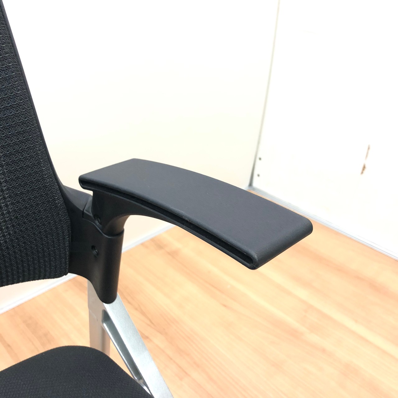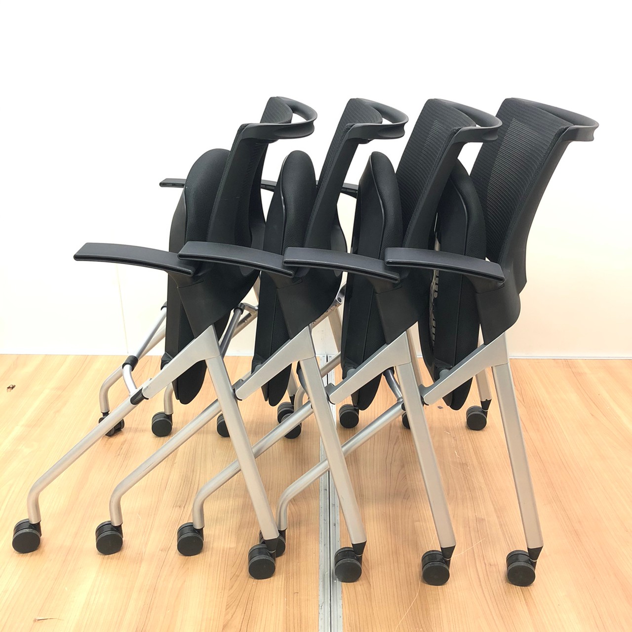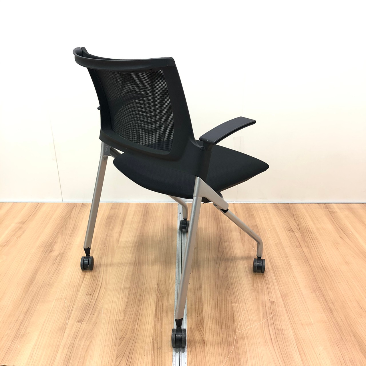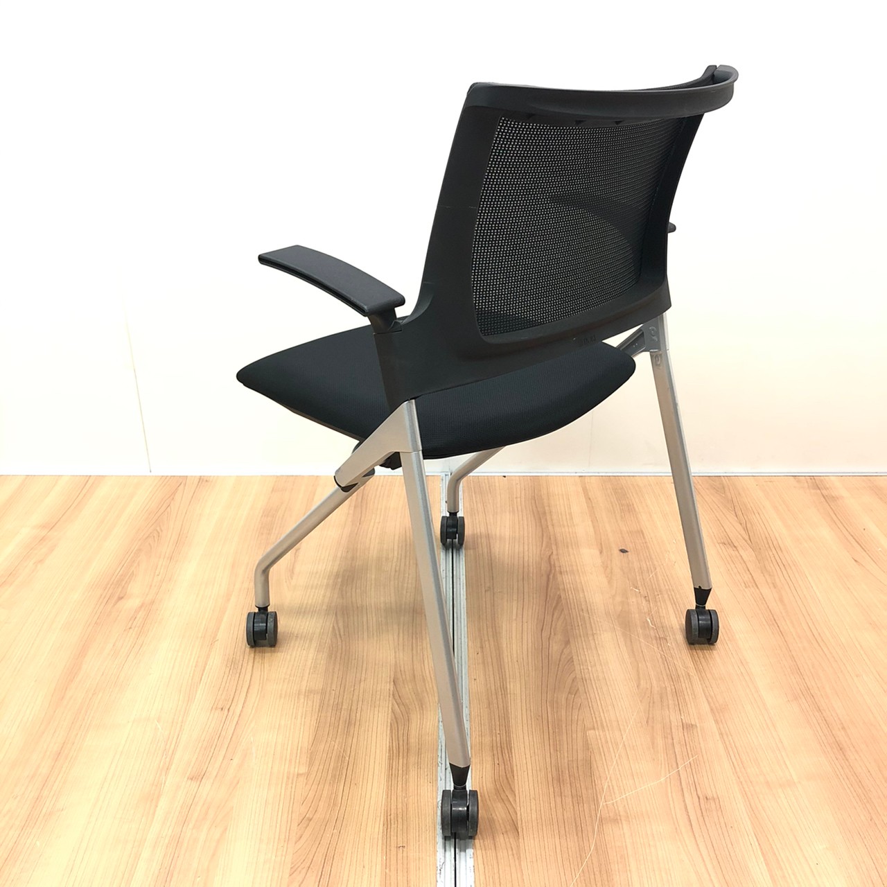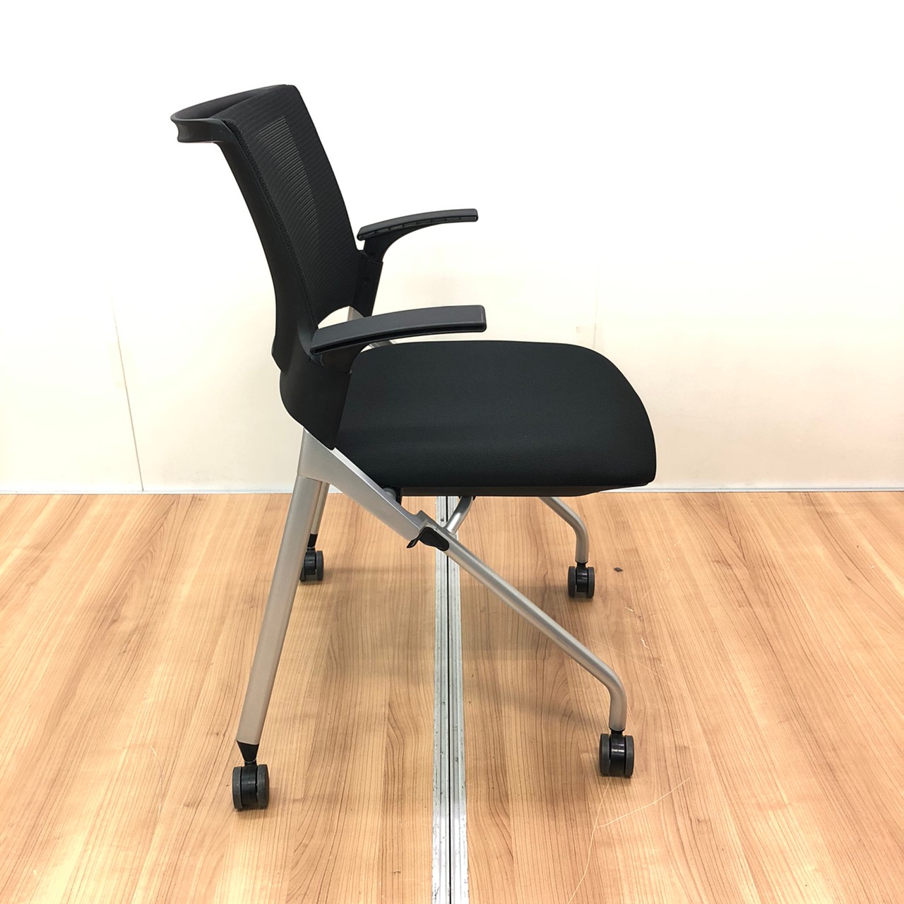 【メッシュタイプのミーティングチェア!】肘かけ付きでリラックス!■イトーキ製 ネスティングチェア 肘付 ブラック ■モノンシリーズ- 千葉店