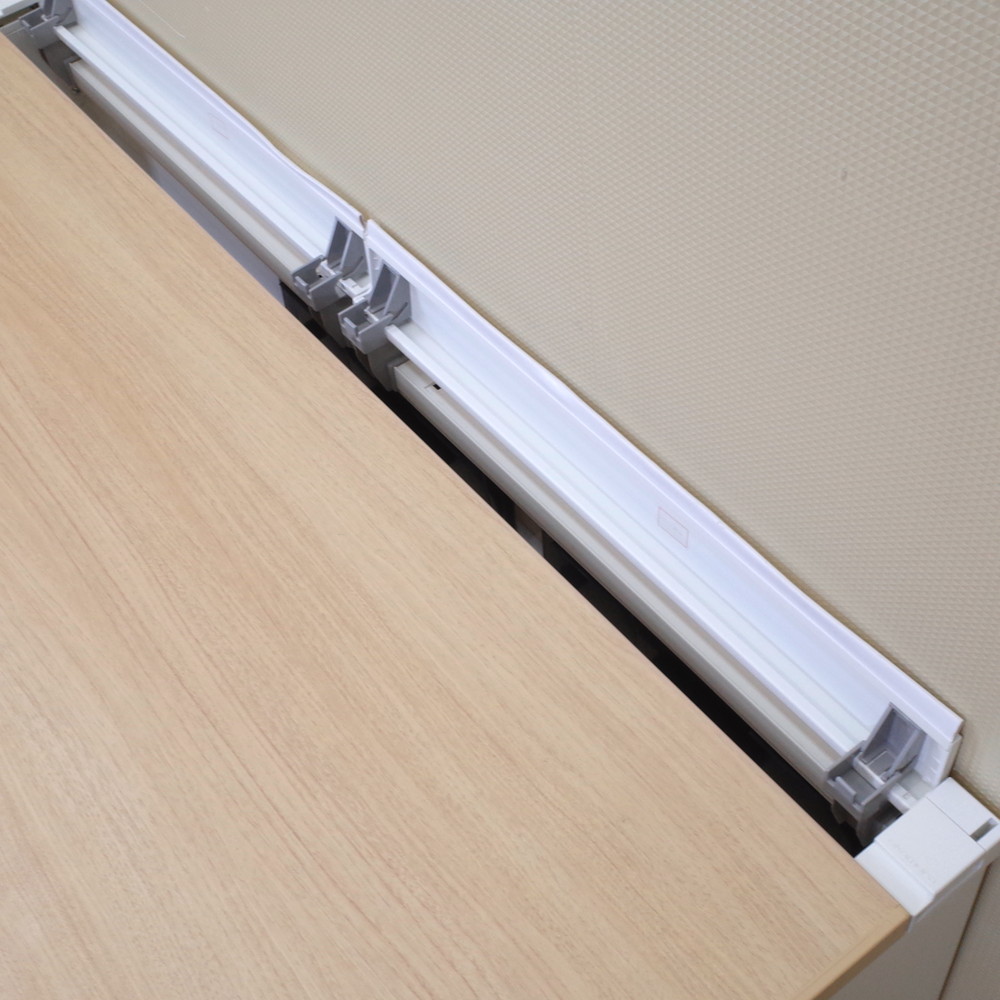 デスク後方をすっきりと見せる幕板を標準装備、脚は足元にゆとりを生み出すL脚タイプとなります。
