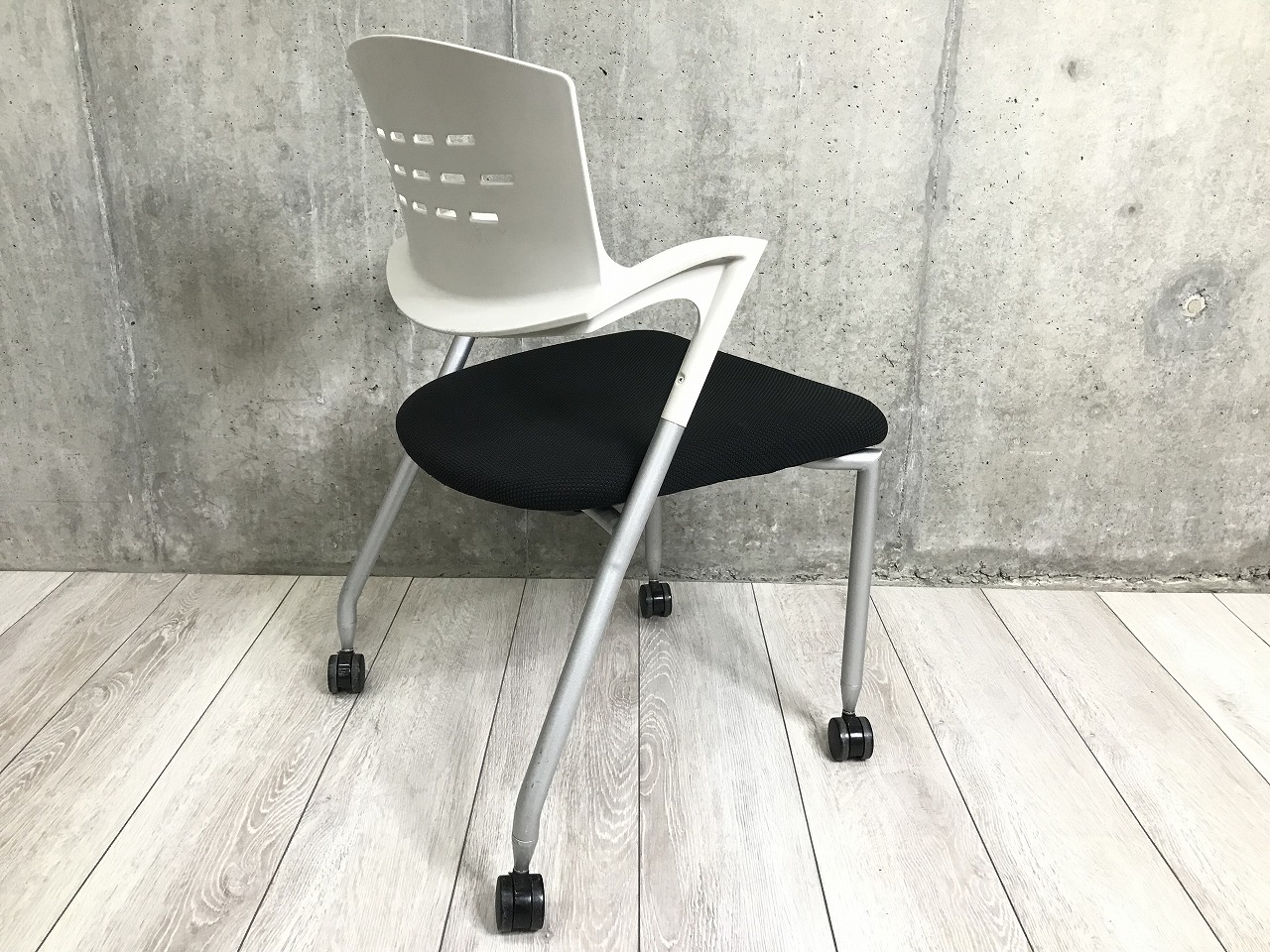 【12脚入荷!】すっきりしたデザイン!ホワイト・ブラックの人気ツートンカラー!急な来客・会議にも対応でき、使わないときは重ねて収納できます! ■イトーキ/カクタス/ブラック- 立川・八王子店