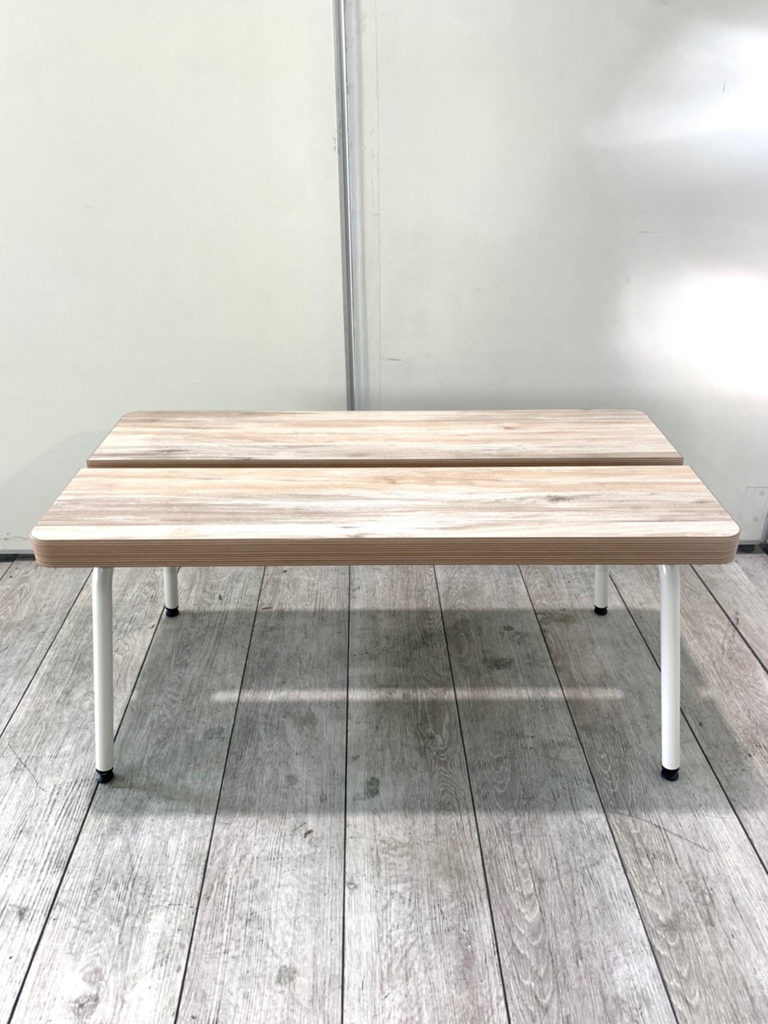 - 一部不具合あり天板歪み、アジャスター無し、キャスター使用不可ようなそのテーブルの本来の効用を果たすための機能以外の一部が使用不可な状態。(例、キャスターロッ ク機能使用不可、棚板無し等がある。)