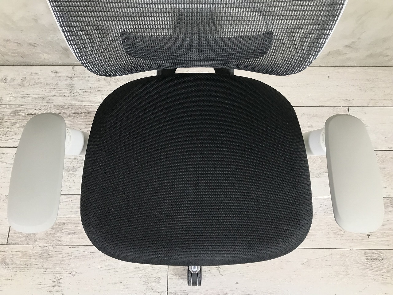 チェアはデスクの上や中に入れて保管しております。もちろん試座も可能ですので、お気軽にお申し付けください!