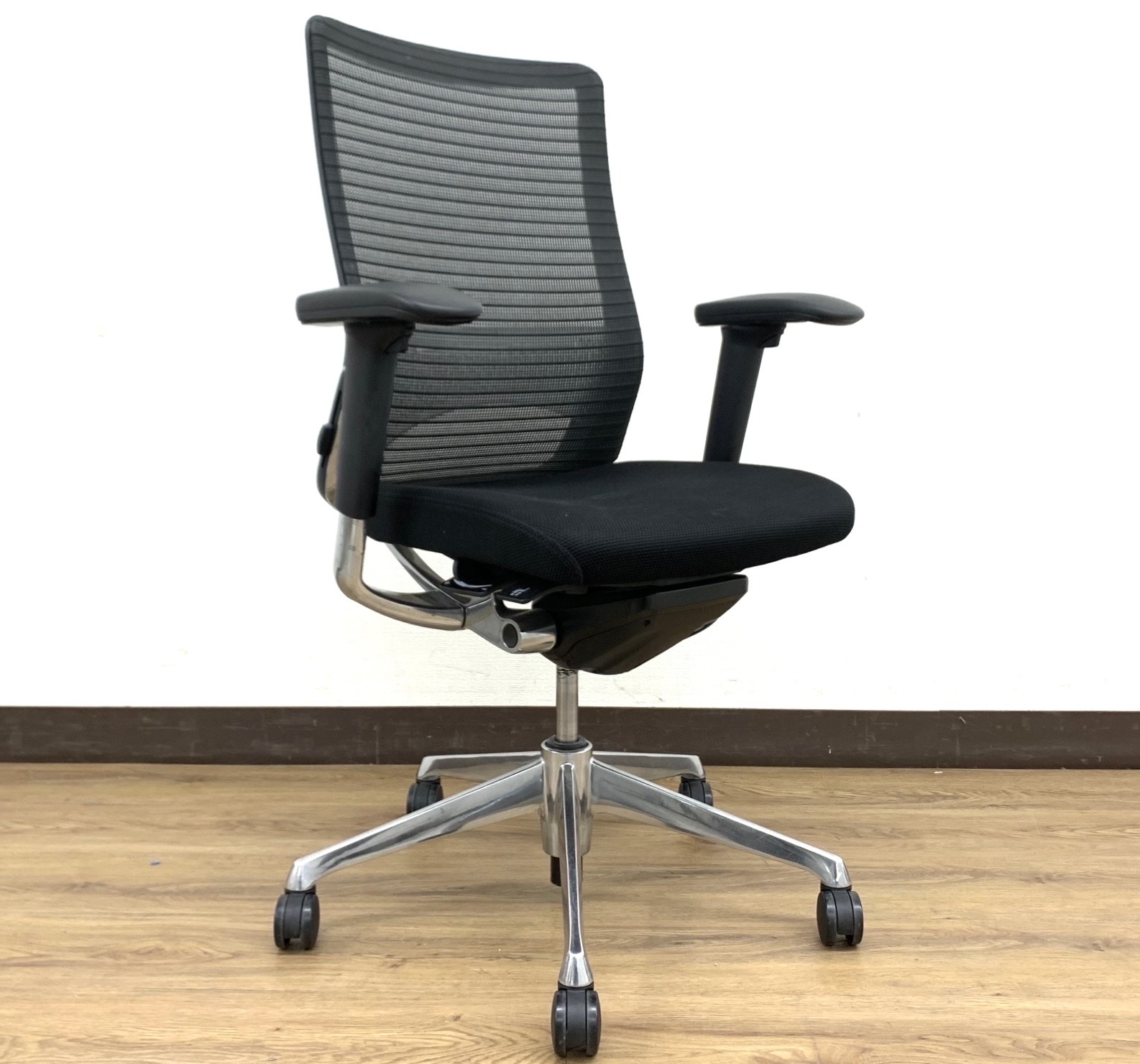 【12脚入荷】オトナの雰囲気ブラックカラーコーラル(CHORAL)チェア※ポリッシュ脚&肘掛け可動タイプ◆オカムラ製【RP】- 埼玉本店