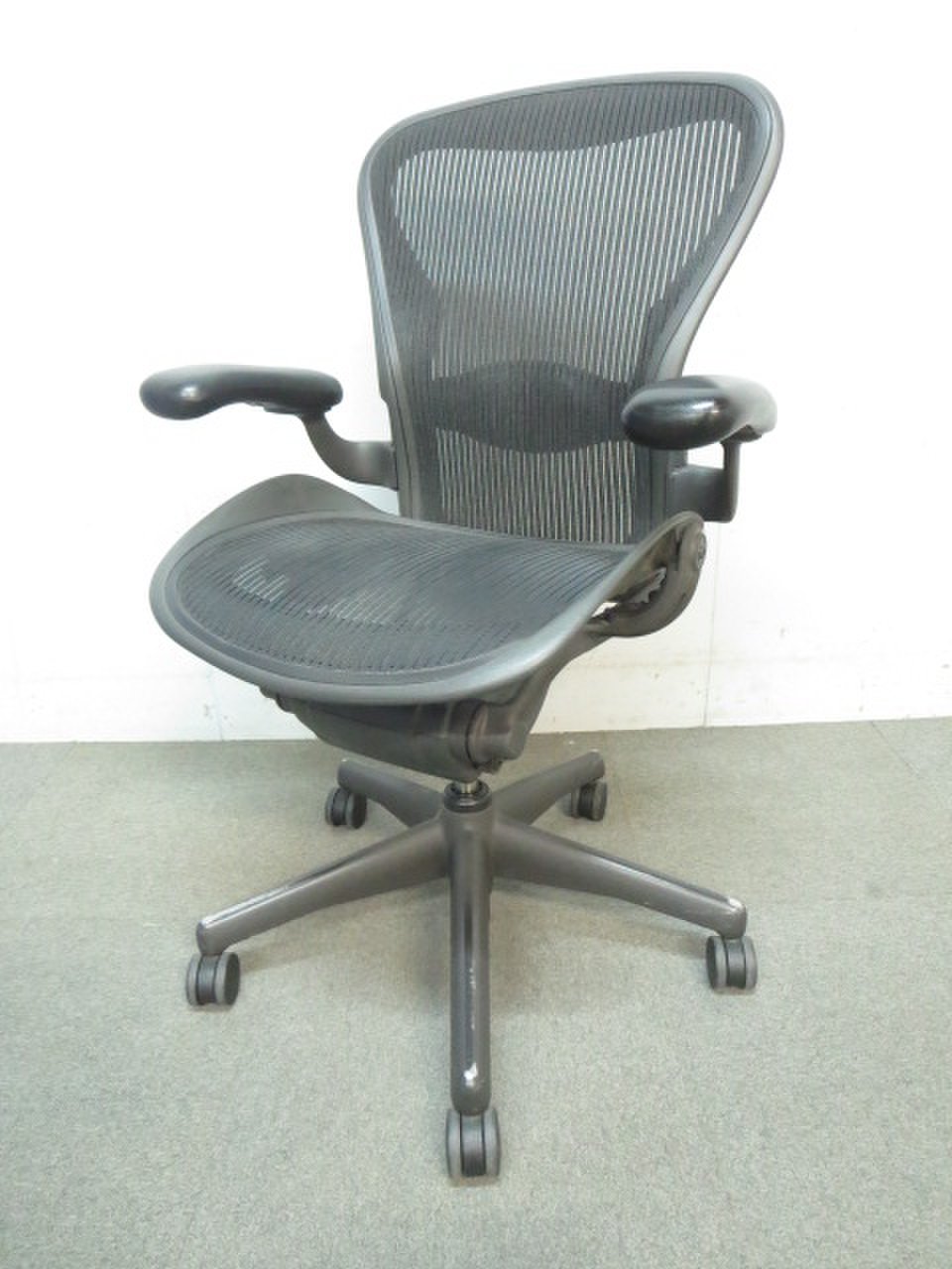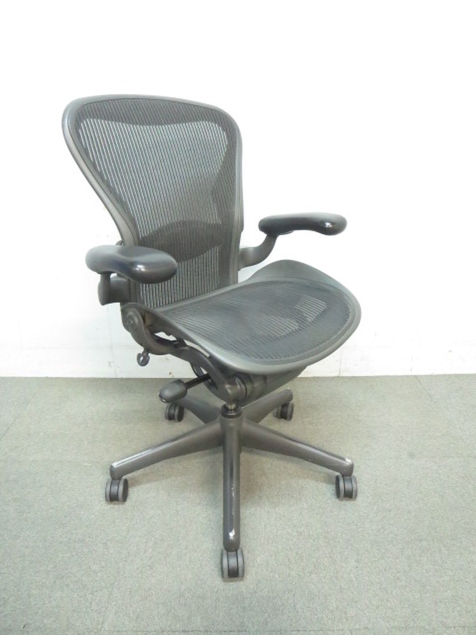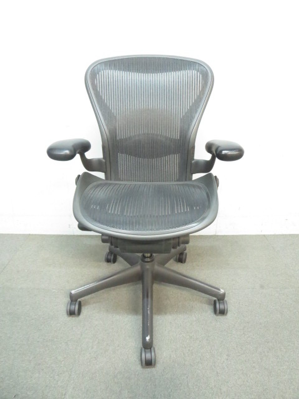 【★状態イマイチのためお安く!】■ハーマンミラー製 アーロンチェア Bサイズ 固定肘 ※キズあり・ランバーサポート無・昇降ガス圧弱めのためお安く!【訳あり特価品】